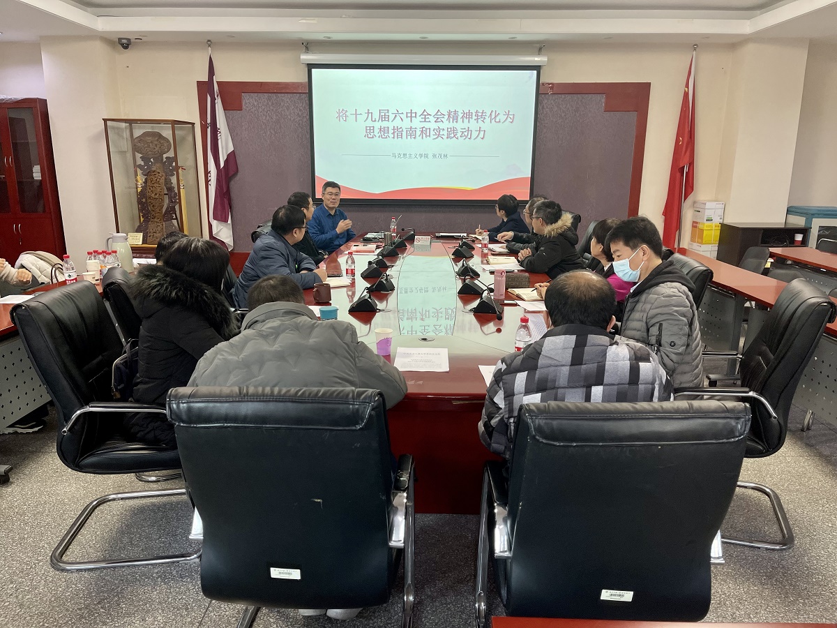 为深入学习贯彻党的十九届六中全会精神,12月2日上午,经济管理学院党委在励学楼201会议室召开党委理论学习中心组扩大会议,专题学习党的十九届六中全会精神。此次学习邀请beat365马克思主义学院党委书记张茂林老师主讲,学院党委书记王伟宾主持,学院党委委员、党支部书记、教工党支部委员共同参加了此次学习。张茂林以“将党的十九届六中全会精神转化为思想指南和实践动力”为题,带领大家从“深刻理解党的百年奋斗重大成就”和“准...
