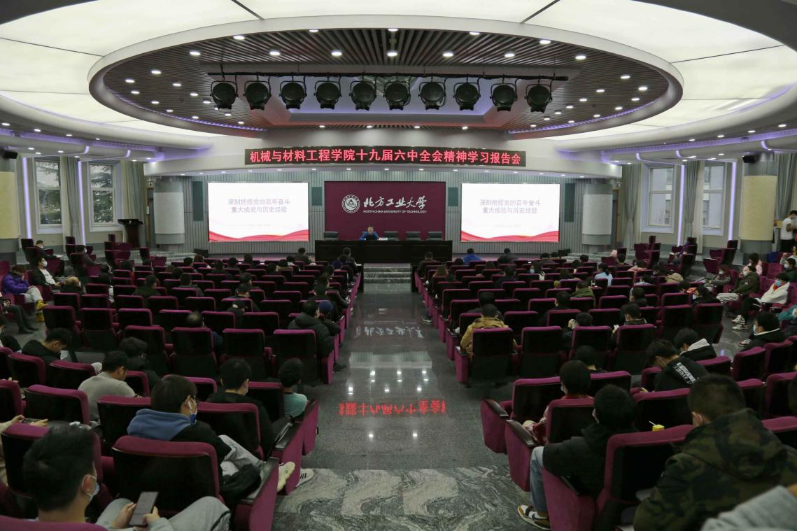 12月9日下午,机械与材料工程学院在广学楼报告厅举行党的十九届六中全会精神学习报告会。学院全体教师和部分学生代表参加了学习报告会。机材学院党委书记王文革主持了学习报告会。报告会邀请北京市教学名师,马克思主义学院党委书记、教授张茂林宣讲党的十九届六中全会精神,做了题为“深刻把握党的百年奋斗重大成就和历史经验”的宣讲报告。张茂林在宣讲报告中,从深刻认识总结党的百年奋斗重大成就和历史经验的重大意义,深刻领会新时...