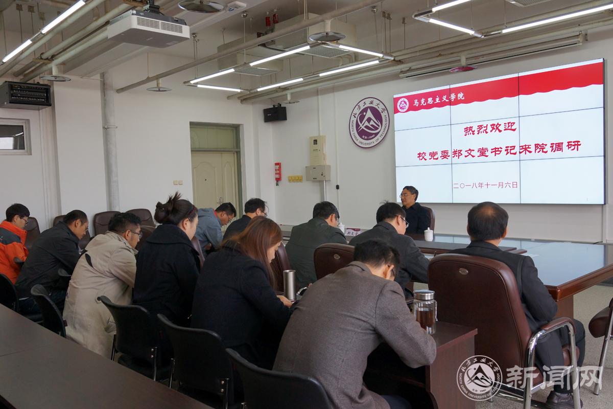 11月6日上午,校党委书记郑文堂来到马克思主义学院,聚焦新时代新马院的建设与发展,同马院班子成员及教师代表进行了充分研讨和深入交流。郑文堂书记首先对马克思主义学院的发展状况及在本科教学审核评估中的工作表现予以充分肯定,并代表学校送上了亲切的慰问。他指出,在新时代新形势下,马院全体教师要进一步抢抓机遇,明确定位、苦练内功、凝聚特色、差异发展,推动学院事业再上台阶。明确定位,就是要明确马院在高校立德...