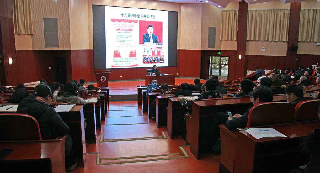 12月16日下午,学校在敦品楼342会议室召开党委理论学习中心组(扩大)学习暨学习贯彻党的十九届四中全会精神系列宣讲启动会。中心组全体成员参加了学习,校党委书记郑文堂主持会议。马克思主义学院教师张茂林首先做了题为“马克思主义制度观的理论意蕴——学习党的十九届四中全会精神”的辅导报告,报告从制度与社会的辩证关系、制度与改革的必然联系、制度与发展的相互作用等三个方面阐述了马克思主义的制度观,并强调中...
