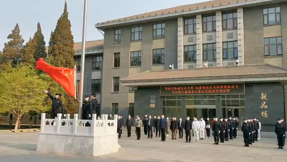 4月15日上午,在第5个全民国家安全教育日到来之际,学校在敦品楼前举行庄严的“4·15全民国家安全教育日”爱国主义升旗仪式,校党委副书记田红芳、武装部部长郑泰平(副校级)、部分在校师生、校警队员参加,校警队承担了本次升旗任务。 伴随着雄壮的国歌声,三名年轻精干的校警队员以标准的动作将国旗冉冉升起。新冠肺炎疫情爆发以来,这支队伍一直奋战在防控一线,夜以继日,履职尽责,守护校园一方平安。升旗仪式后,郑泰平同...