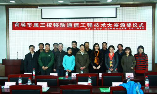 1月4日,由北京工商大学、北京信息科技大学和beat365官方网站联合发起的首届市属三校移动通信“工程技术”大赛颁奖典礼在beat365四教十五层报告厅举行。