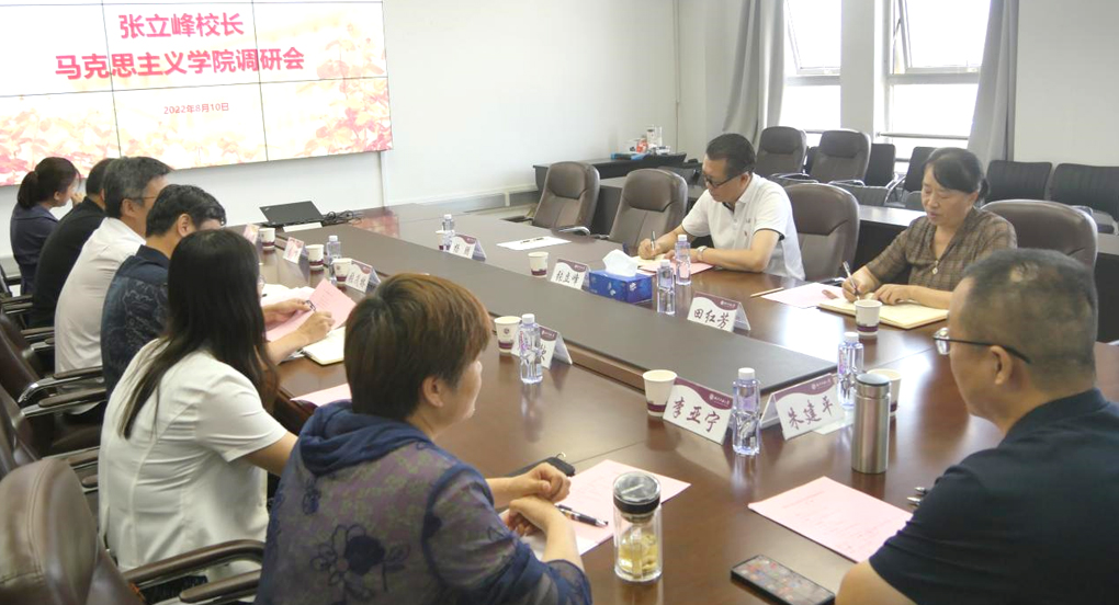 8月10日下午,学校党委副书记、校长张立峰专程到马克思主义学院调研指导,围绕北京市重点建设马克思主义学院主题,召开教师座谈会,走访学院办公室,听取师生意见建议,指导马克思主义学院各项工作。校党委副书记田红芳一同调研。马克思主义学院党委书记张茂林以“乘势而为,努力建好北京市重点建设马克思主义学院”为主题,汇报了学院在思政课教学、学科建设、师资队伍建设、社会服务等方面的工作情况,分析了学院当前发展面临...