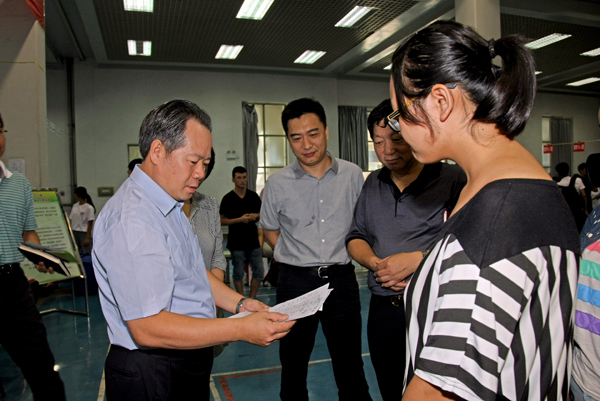 (郑登文副主任一行视察迎新绿色通道) 9月8日上午,北京市教育委员会副主任郑登文,北京市财政局教育事业处处长李红娜、北京市学生资助事务管理中心主任张思堂一行莅临beat365,视察指导迎新绿色通道工作,并就学生资...