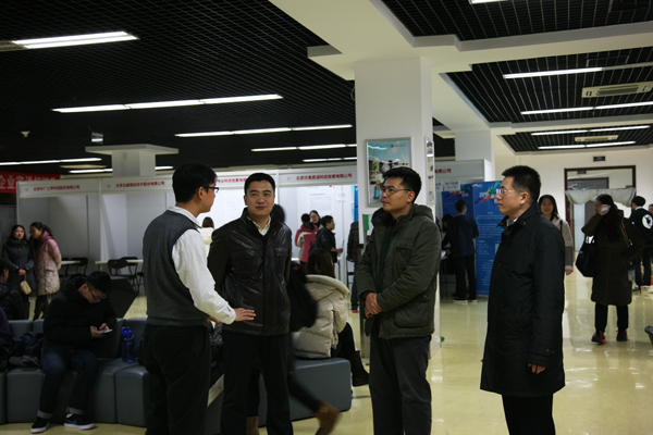11月19日下午,党委书记谢辉来到学生服务楼三层“2016届毕业生双选会”现场,调研指导毕业生就业工作。