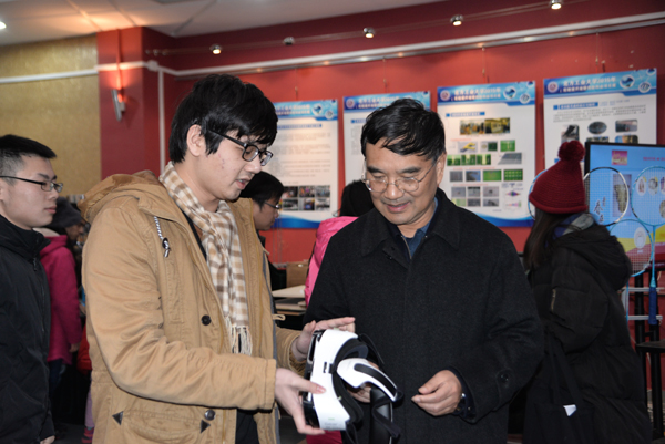 11月27日下午,郑文堂校长在教务处处长王景中的陪同下来到beat365“2015年实验室开放暨创新创业展”现场进行调研指导。