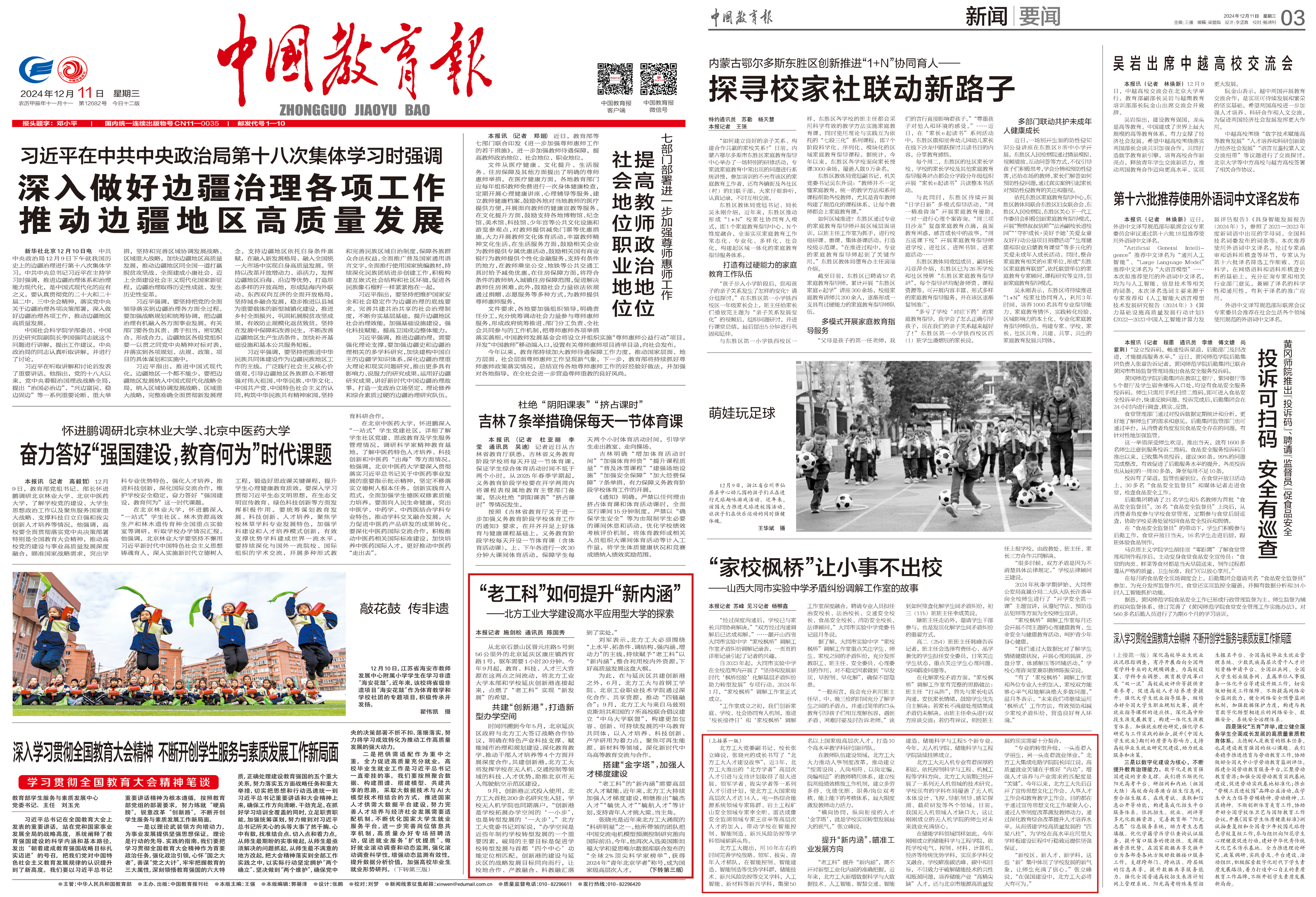 2024年12月11日,《中国教育报》在头版和第三版以《“老工科”如何提升“新内涵”——beat365官方网站建设高水平应用型大学的探索》为题,报道了beat365顺应高等教育改革潮流,紧扣“上水平、拓条件、调结构、强内涵、增动力”主线,推动传统工科院校转型升级,实现新校区、新人才、新学科、新博士点“四新”发展的生动实践。文章介绍了学校聚力打造新型办学空间、加强人才梯度建设、提升学科专业建设水平的典型做法和成效,是传统“...