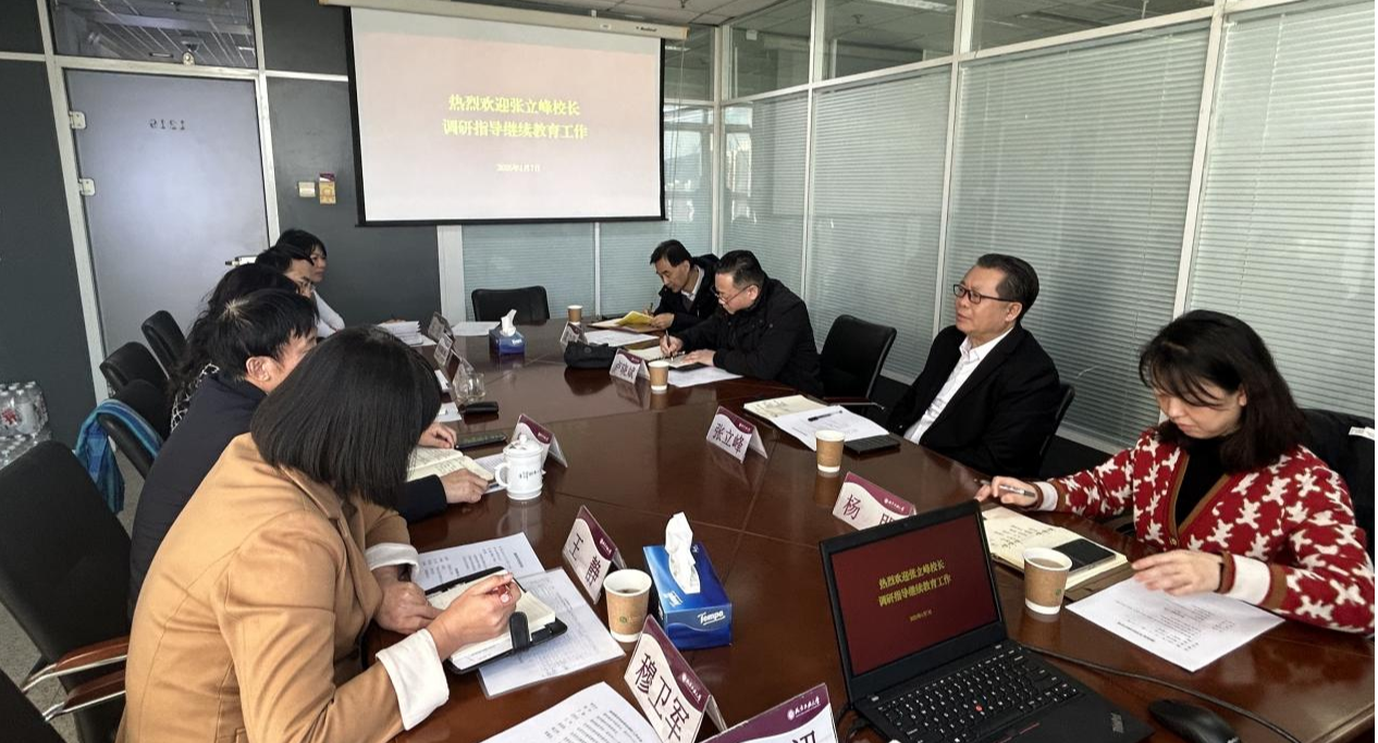 1月7日下午,校党委副书记、校长张立峰到继续教育学院(培训中心)调研指导,听取学院工作汇报,与学院全体老师座谈交流。副校长卢晓斌主持调研。继续教育学院院长熊佳全从2024年学院工作完成情况、2025年工作要点、当下面临的困境与改进思路等三个方面进行了汇报。参会的其他老师和相关处室负责人就学校非学历教育管理和事业发展工作进行了交流。张立峰认真听取了相关发言,对继续教育学院全体人员的工作态度和工作作风给予了...