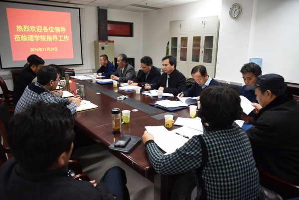 11月29日下午,郑文堂校长、王建稳副校长,研究生院、科技处、人事处、图书馆等部门负责人及学校相关学科专家到理学院调研,并针对学院的学科发展以及博士点申报工作进行具体指导。