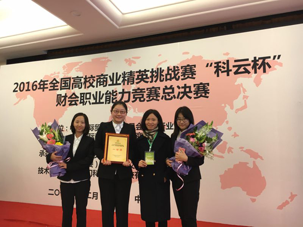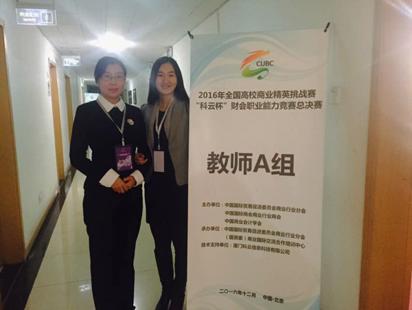 12月2日至4日,2016 年全国高校商业精英挑战赛“科云杯”财会职业能力竞赛(教师组)在北京“市长之家”举行,经济管理学院会计系黄晓蓓与林芳老师参赛并获得“全国高校商科教育财会专业十佳教师”与教师组“说课竞赛...