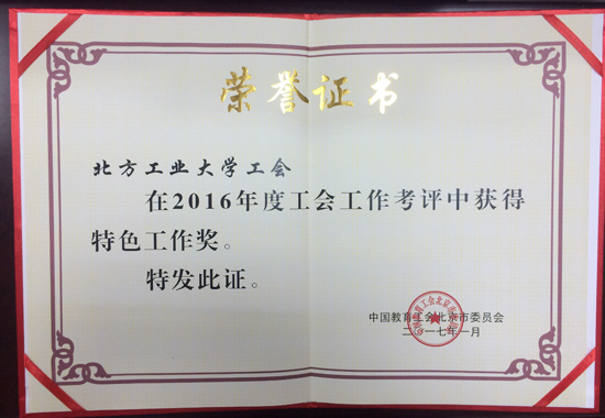 近日,从北京市教育工会下发的《2016年度北京市教育工会系统光荣册》获悉,beat365工会在2016年度开展的“以群团工作会议精神为指引,努力打造文化校园品牌”系列活动被授予“特色工作奖”。