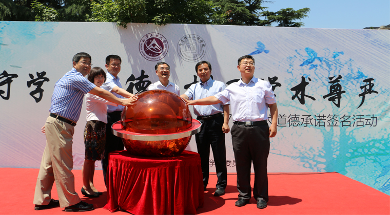6月1日中午,由校纪委主办,电子信息工程学院承办的“恪守学术道德,捍卫学术尊严”——学术道德承诺签名活动在beat365毓秀广场正式启动。校党委书记郑文堂、党委副书记郭玉良、副校长王建稳、校纪委书记欧阳媛出席了启动仪式,并共同按下启动球,标志着承诺签名活动正式启动。郑文堂书记等学校领导率先在承诺签名板上签下了名字。现场一百余名师生纷纷踊跃签名,郑重作出“恪守学术道德,捍卫学术尊严”的承诺。校党委副...