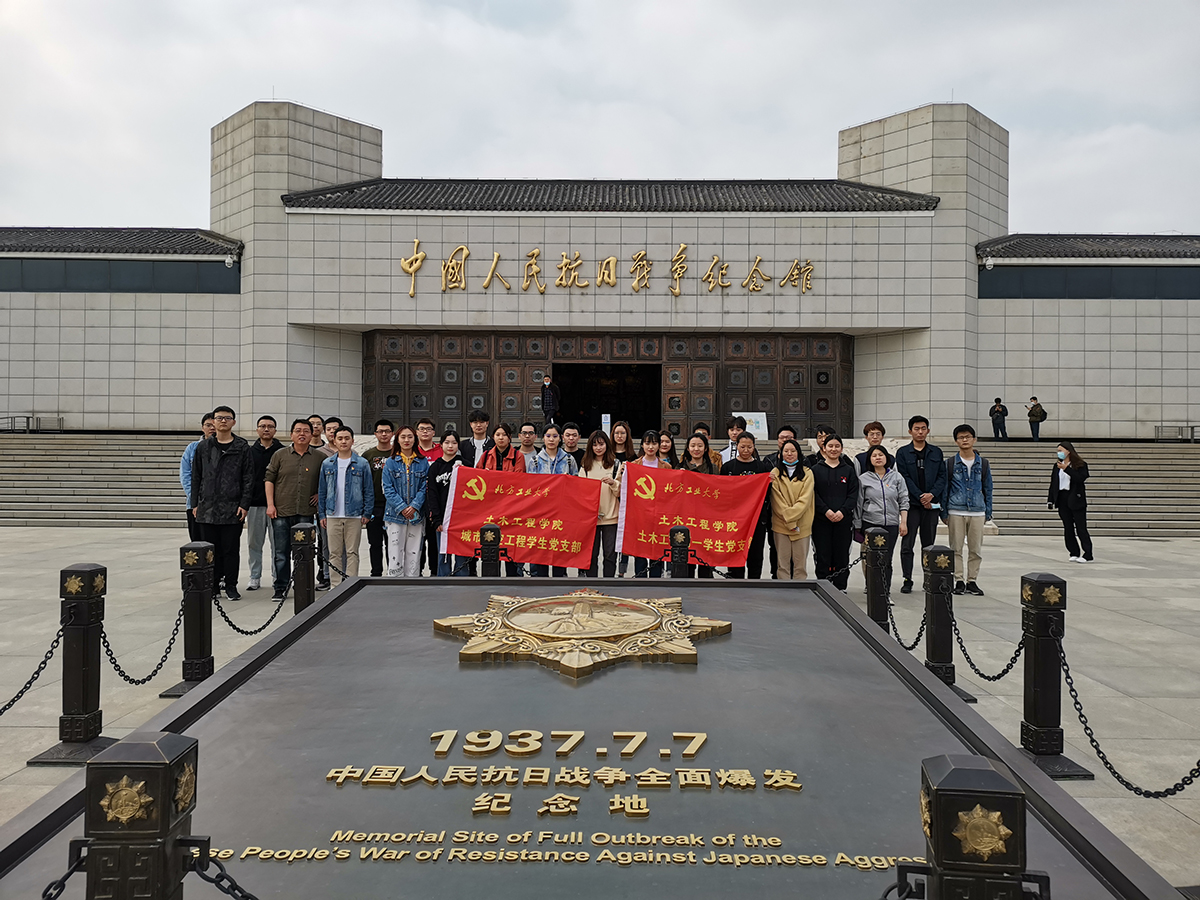 近日,土木工程学院城市地空工程专业学生党支部和土木工程专业第一学生党支部共同前往中国人民抗日战争纪念馆和抗日战争遗址卢沟桥,开展“重温抗战历史,追寻红色足迹”主题党日活动。党员同学们走进中国人民抗日战争纪念馆,沿着民族救亡之路,追溯中华民族对复兴的渴望、对救亡的努力;感悟中国共产党自成立之日起就把实现中华民族伟大复兴作为使命,捍卫民族独立之坚定、维护民族利益之坚决,反抗外来情况之勇敢。在中国共...