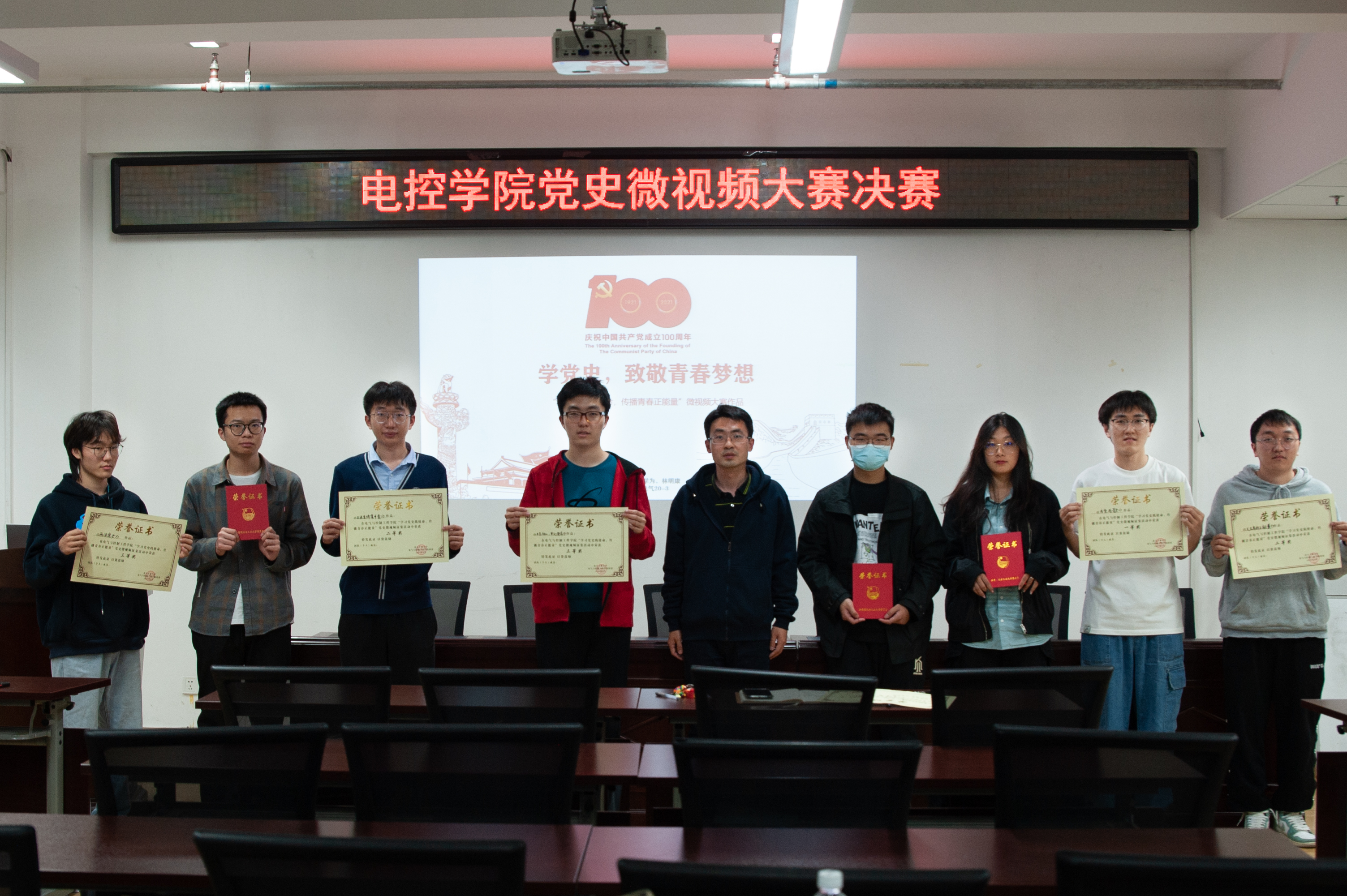 为进一步开展好“永远跟党走”主题宣传教育活动,鼓励引导广大青年学生积极运用网络文化作品创作优秀的党史学习素材,全面提升网络素养,唱响时代主旋律,着力培养德智体美劳全面发展的社会主义建设者和接班人。按照校学工部的统一部署,电控学院团委组织开展了以“学习党史践使命,传播青春正能量”为主题的党史微视频大赛。本次大赛从全院学生中征集优秀作品,经过紧张的预选赛,共有8份作品进入决赛。并于4月26日晚在博远楼4...