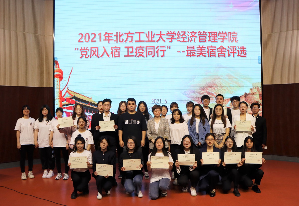 5月11日下午,经济管理学院在文化会堂举办了“党风入宿 卫疫同行”——最美宿舍评选活动。学院党委副书记赵洁、学生公寓服务部经理王桂兰、各年级辅导员和各公寓管理员一同参加了此次活动。 经过前期筛选和评议,共有8个宿舍入围展示环节。参与展示的宿舍围绕理想信念、学风建设、卫生防疫、特色活动等方面进行陈述。经过评委评选,最终悦A620等4个宿舍获评学院十佳宿舍。活动之后,学院党委副书记赵洁老师向获奖的宿舍和个...