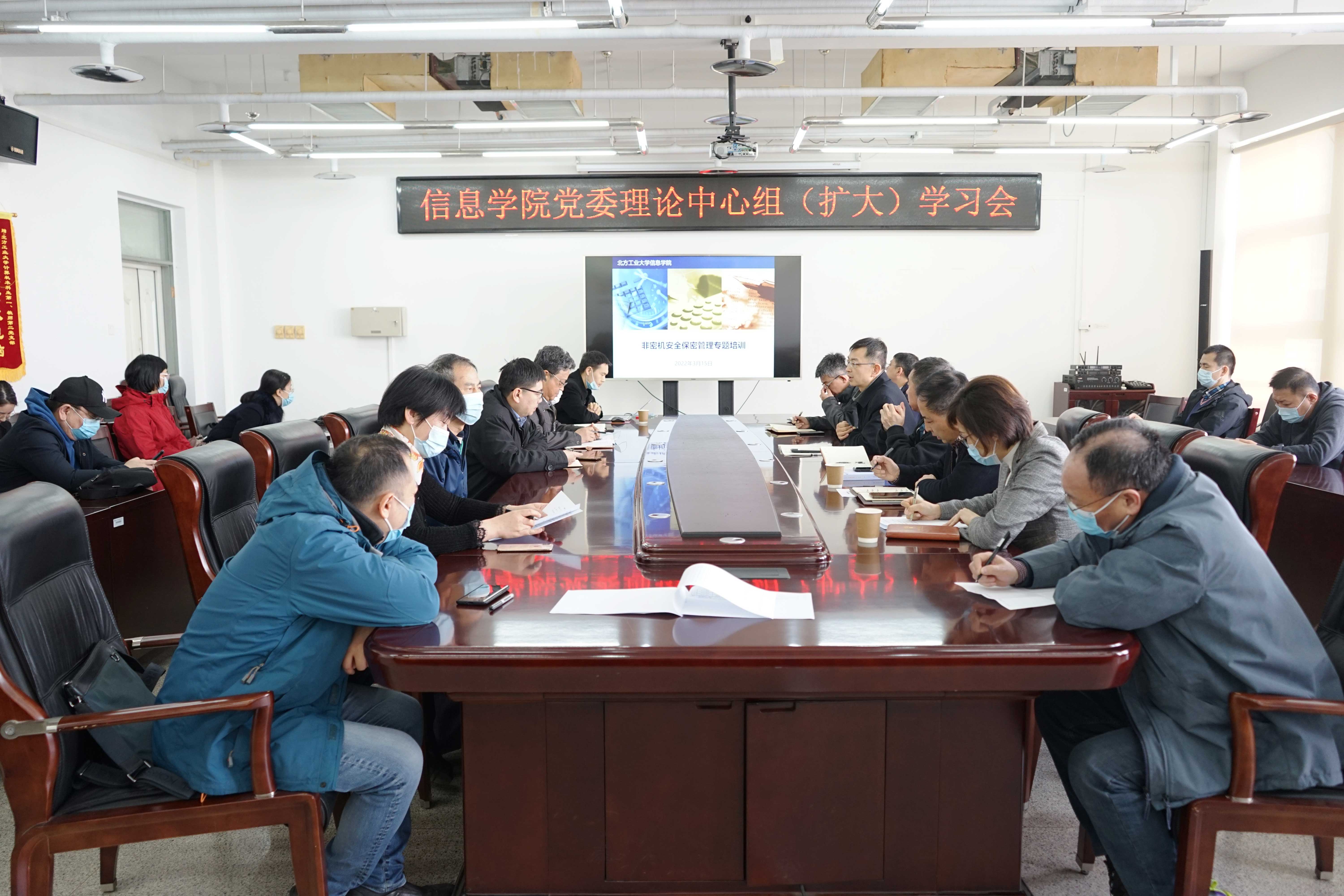 3月15日,信息学院在瀚学楼1014召开理论中心组(扩大)学习会,专题学习安全保密相关知识。学院党委理论学习中心组成员参加会议,各系(中心)主任、党支部书记、部分教师列席会议,学校保密办梁令富副主任应邀参会,学校党委理论学习中心组巡听工作组成员、宣传部副部长陈国秀到会旁听,会议由学院党委书记王月海主持。会议邀请学校有关专家进行了非密机安全保密管理专题报告,就非密机审查要求、十二种严重违规行为、非密机自...