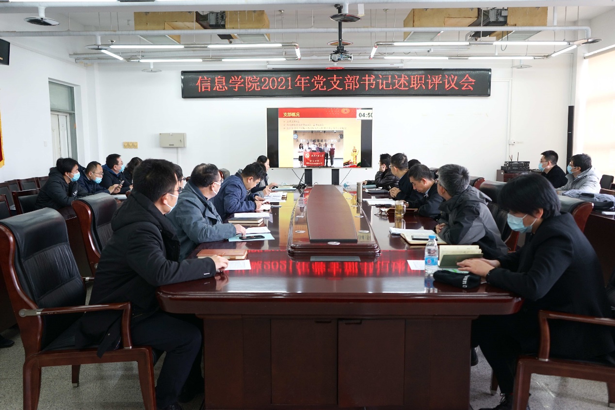 为着力落实管党治党主体责任,不断夯实基层党支部战斗堡垒作用,3月22日,信息学院党委在瀚学楼1014召开2021年度党支部书记抓党建述职评议会,会议由学院党委书记王月海主持。学院党委委员、各党支部书记参加会议。各党支部书记分别从推动党史学习教育和我为群众办实事进展、支部政治建设、基层组织建设、特色党建工作、支部及党员作用发挥情况等方面进行了述职。学院党委委员对所联系支部书记述职情况作了点评,在肯定成绩的同...