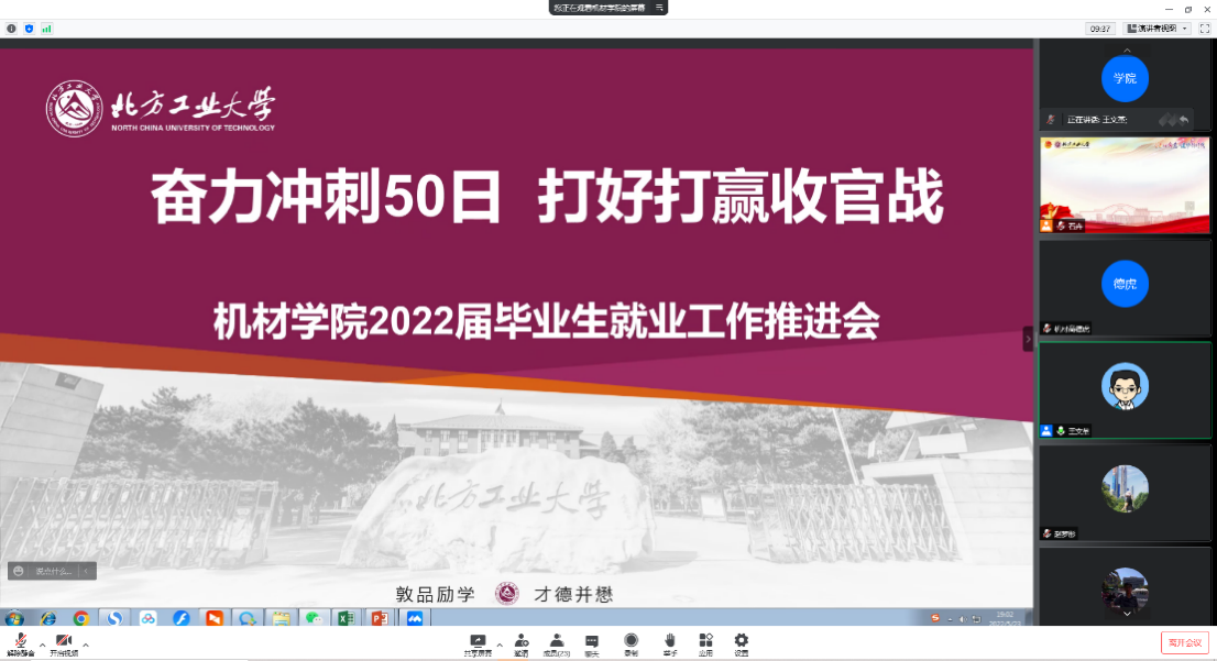 5月23日晚,机材学院线上召开2022届毕业生就业工作推进会,总结分析近一周学院就业工作进展,安排部署下周学院就业相关重点工作。学院班子成员、各系主任、班导师、就业相关辅导员参加会议。会上,本科生毕业年级辅导员、研究生辅导员分别介绍了当前学院本科毕业生、研究生毕业生就业工作进展情况。各班导师对班级近期就业情况进行了介绍,对尚未实现就业的同学情况进行了一一梳理,分析了他们就业进展情况、个人就业意愿、存在...