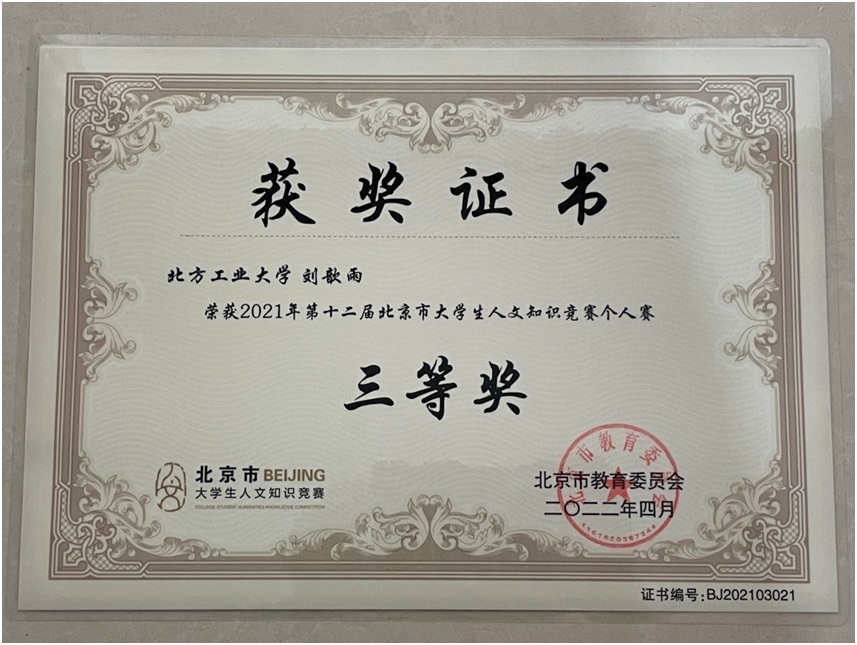 近日,第十二届北京市大学生人文知识竞赛个人赛成绩揭晓,beat365文法学院中文系学生刘歆雨获得三等奖。北京市大学生人文知识竞赛是由北京市教委主办的省部级A类学科竞赛,主要考察学生以文史知识为主的综合素质。beat365学生自2015年参加此项赛事,曾获团体二等奖1项,团体三等奖2项,个人赛二等奖3项,个人赛三等奖1项。受到疫情影响,本届大赛只举办了线上个人赛。beat365多年来一直高度重视以大学美育为核心的文化素质教育工作。疫情...