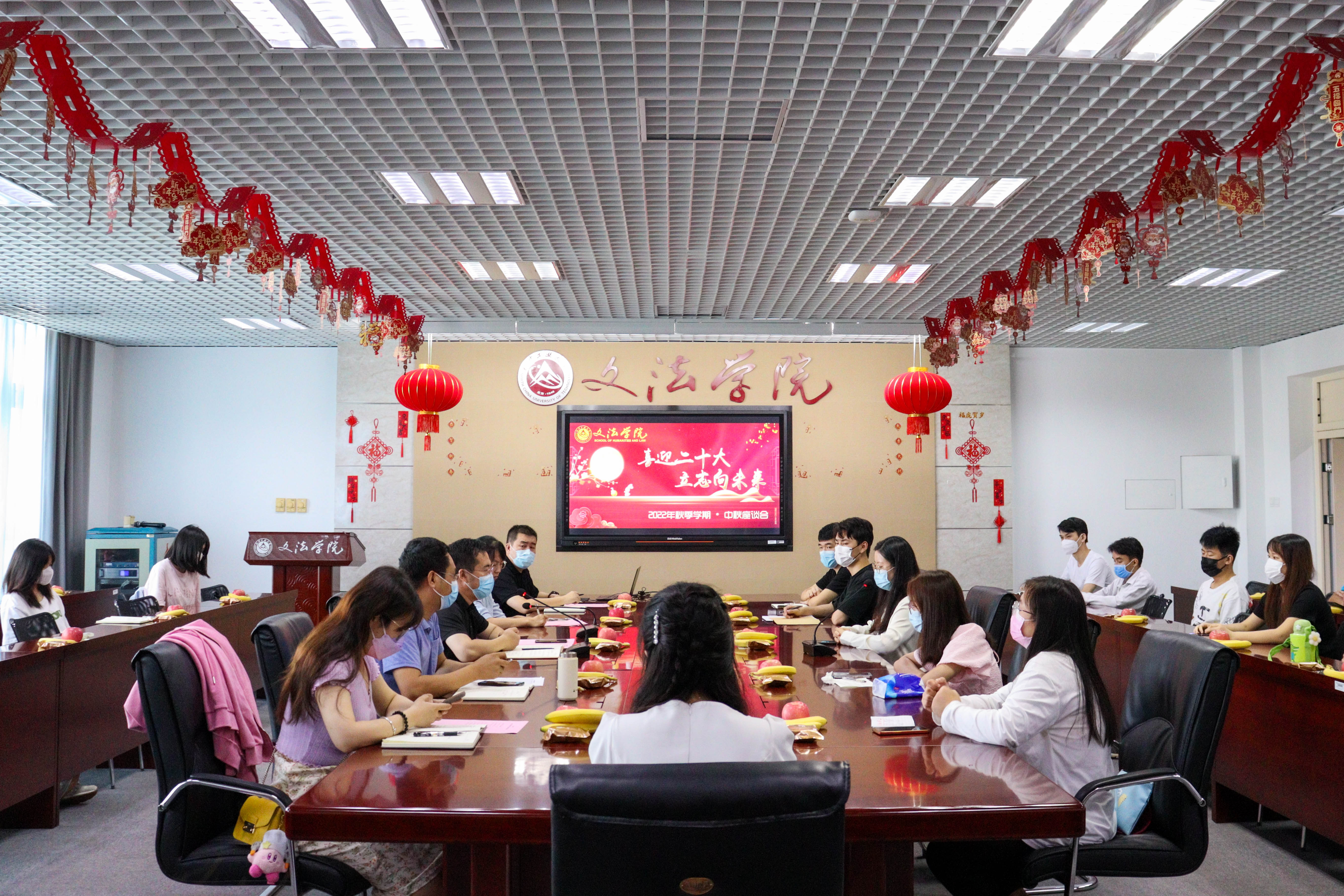 金秋九月,丹桂飘香。为切实关心关爱留校过节学生,9月12日上午,文法学院在瀚学楼710学术中心召开“喜迎二十大,立志向未来”主题座谈会。文法学院党委书记袁凤识,团委书记单连良,辅导员王波、刘曼利及各年级在校学生代表近30人参加了座谈会。座谈会由学院党委副书记刘霁炜主持。座谈会前,学院院长刘泽军为留校同学们发放了节日礼物并与同学们亲切交流。座谈会上,与会同学们纷纷发言。新入校同学代表分享了入校前的学习、...