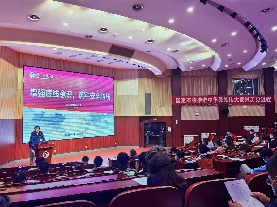 10月21日晚,机材学院在文化会堂召开“增强底线意识,筑牢安全防线”主题工作会议,学院学工办全体成员、全院团学骨干90余人参加会议。会议由学院团委书记李旭主持。李旭从学生干部责任意识方面系统地阐述了在疫情防控及日常工作中学生干部应具备的素质和能力,并强调作为学生干部,要提高政治站位,提高防范意识,对于同学的诉求争取早发现、早报告、早解决。学院党委副书记石卉向同学们传达了学校疫情防控政策,强调在校园内...