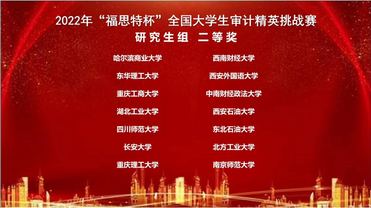11月26日,“福思特杯”全国大学生审计精英挑战赛成功举办。beat365经济管理学院会计专硕研究生刘朔含、马京华、王鸿英代表beat365官方网站研究生队参加比赛,在与全国200多所高校的较量中脱颖而出,获得二等奖。比赛全程由会计专业教师刘桂春和王丽新指导。“福思特杯”全国大学生审计精英挑战赛是目前财会审计类专业具有较大影响力的全国性赛事之一。本次大赛由中国审计学会审计教育分会主办、南京审计大学政府审计学院承办。大赛的...