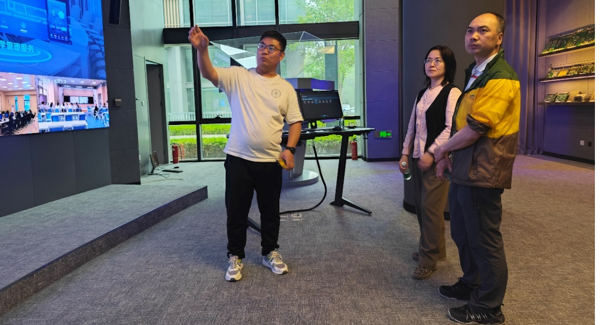 5月19日,网信中心副主任李敏带领中心教育技术部和公共机房负责人及工作人员一行,前往北京信息科技大学(北信科)昌平校区网络与信息管理中心(网管中心)调研,北信科教育技术部白老师、赵老师对兄弟院校同行的来访和交流表示欢迎并热情接待。在北京信息科技大学主控中心,白老师向大家介绍了北信科网管中心的人员架构、岗位职责及多媒体教室建设管理等基本情况,重点介绍了北信科主控中心、副控中心、可视化智慧教学管理平台...