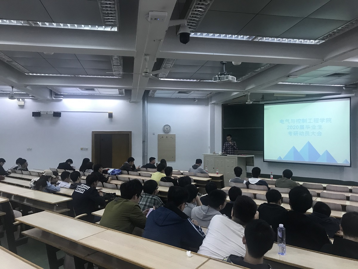 为让同学们进一步认识考研、明确方向,获得更好的深造机会,近日,电气与控制工程学院在广学楼401教室召开了2016级学生考研动员会。2016级100余名同学到场参加,院长王力、党委副书记史宁出席会议。会议由辅导员李庚洋主持。会上,2019年考研已被录取的15级学生代表汪云峰、梁欢、罗嗣梧、张霄分别从学校的选择、专业的学习、复习进度安排、心态的调整等方面与大家分享了考研的体会,为即将考研的16级同学提供了宝贵的经验。...