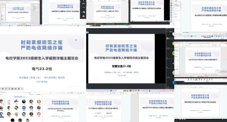 新生入学报到在即,为了保证同学们安全平稳进入大学学习新阶段、上好开学前“防诈骗”第一课,电控学院新生辅导员田儒基、小辅导员组织2023级本科新生以“时刻紧绷防范之弦严防电信网络诈骗”为主题召开主题线上班会。班会结合近几年学校高发的诈骗案件以及产生的巨大影响,分析面对花样繁多的诈骗手段同学们常常产生的错误心理,诈骗人员如何利用同学们对电信网络诈骗轻视、忽视的错误认识,展开的几种常见模式的电信网络诈骗...