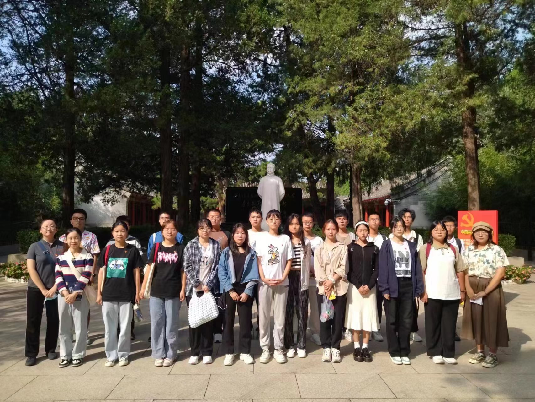 为追寻红色精神,坚定理想信念,信息学院数媒本科学生党支部于9月28日赴李大钊烈士陵园开展“缅怀先烈功绩,赓续红色血脉”主题党日活动。全体党员怀着无比崇敬和沉重的心情,乘车前往李大钊烈士雕像前。上午9时,参加活动的党员整齐列队,庄严肃立,向为中国人民解放事业和共和国建设事业英勇献身的烈士默哀并庄严宣誓。同学们通过重温入党誓词,表达缅怀之情,在铿锵的誓词声中,坚定入党初心,强化理想信念。随后,全体党员...