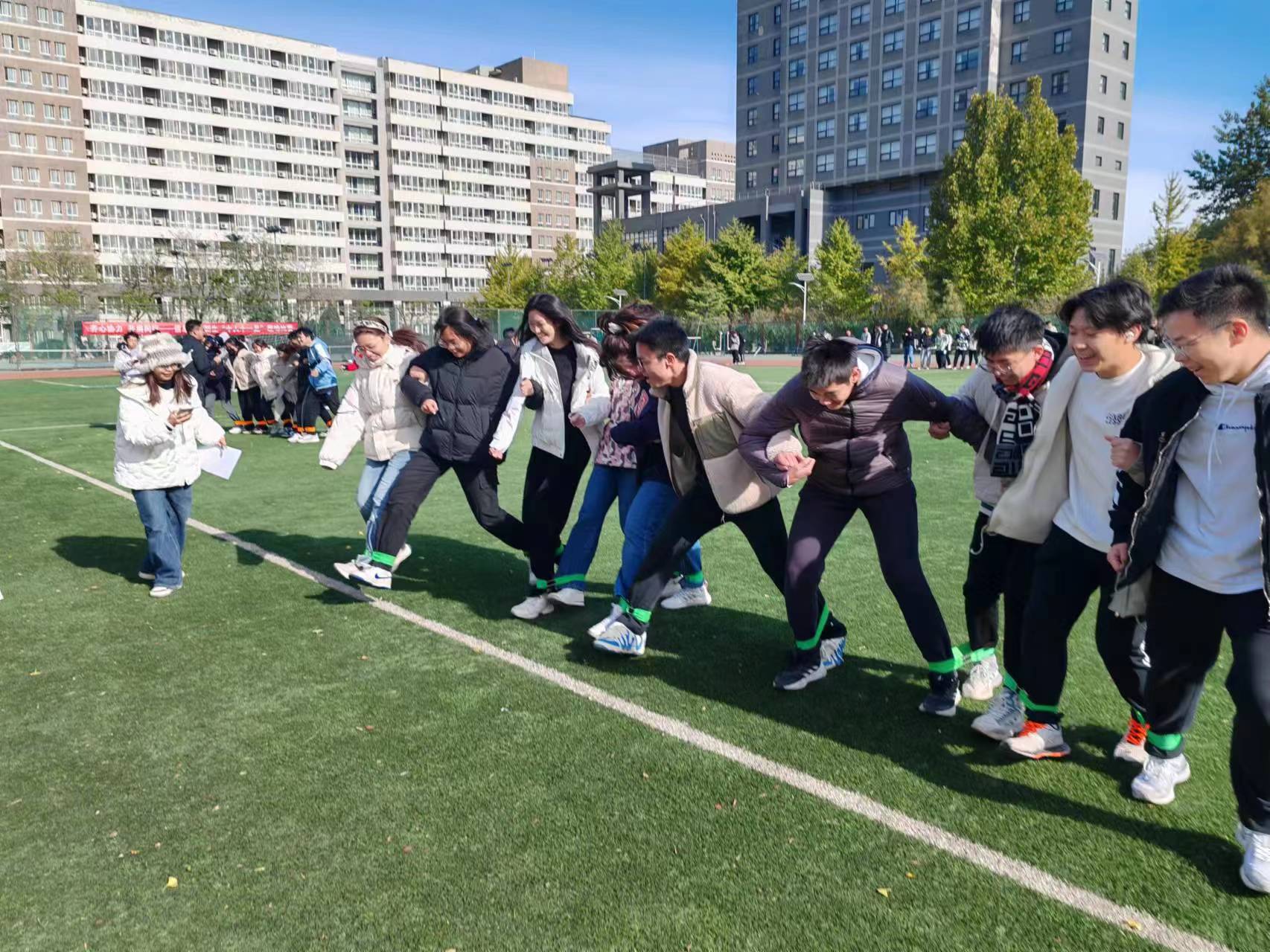 为了丰富新生课余文化生活,提高新生班级凝聚力,增强学生身体素质,彰显青春活力,11月10日,信息学院在小操场举办了新生“10人11足”趣味比赛,23级计类全体同学以及辅导员、班导师参加本次活动。本次比赛以班级组队,各班选派10人参加,上场同学成纵队站在起跑线后,每组十人并肩站立,内侧小腿用小布条捆住形成“十人十一足”。比赛距离为50米,根据完成时间,确定比赛成绩。各班同学早早来到比赛现场,大家摩拳擦掌,跃跃...