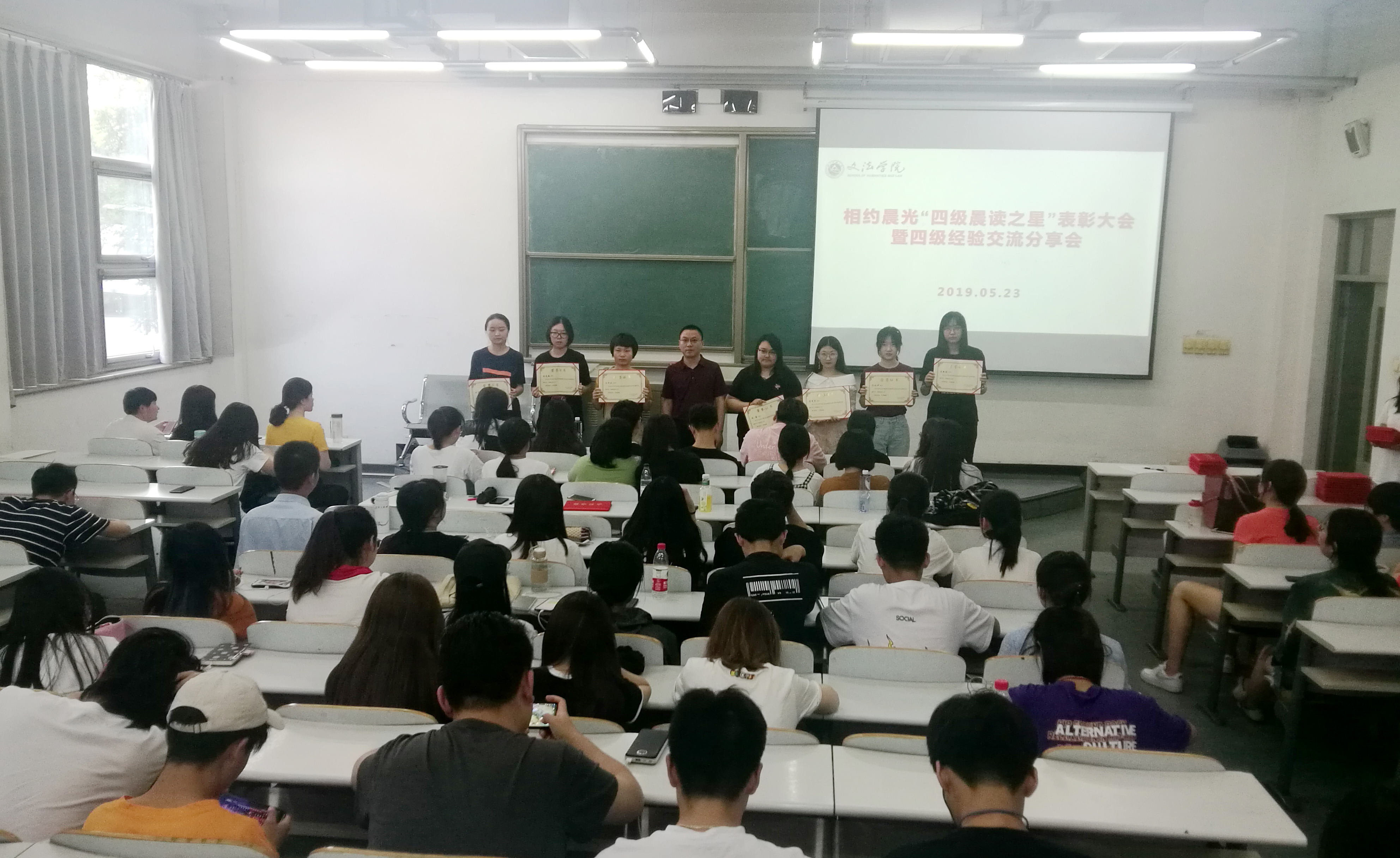 近日,文法学院在瀚学楼107教室召开英语四级晨读表彰暨经验分享会。学院党委副书记刘祥坠、2016级法学专业学生代表王雨蒙、广告学专业学生代表赵杨馨萌和汉语言文学专业学生代表赵雨涵,法学、中文、广告学专业2017级全体学生参加。会议由辅导员王波主持。会上,年级辅导员通报了各班英语四级备考期间晨读、模考及期中考试情况,宣读了“四级晨读之星”学生名单。2016级3名学生代表结合自身实际,分别从不同角度分享了各自备考...