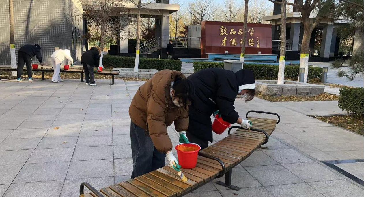11月24日下午,服务中心组织20名学生在钟秀广场开展“匠”心粉刷座椅,扮靓校园的劳动教育课堂。绿化环卫党支部和动力修缮党支部联合党员骨干、积极分子共15名同志参加。课堂现场,由动力修缮党支部专业师傅从油漆工序、操作手法、均匀着色、注意事项四方面进行了详细的讲解。两支部采用“2+4”模式,由两名党员带领四名学生开展粉刷座椅的劳动实践课。随后,学生们有序领取预制木蜡漆、小刷子、作业手套等材料用具,用自己的双...