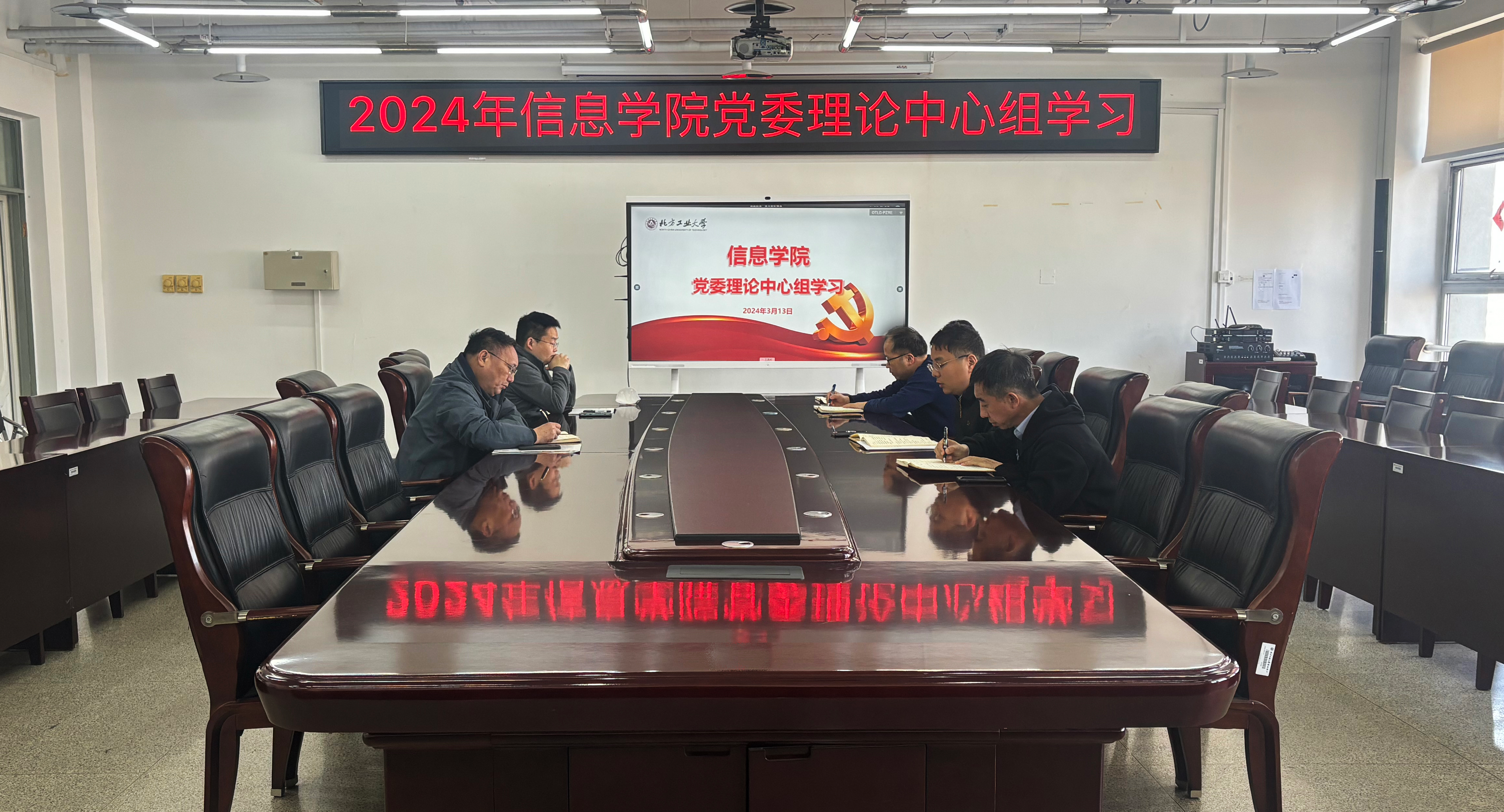 3月13日,信息学院党委理论学习中心组在瀚学楼1014会议室召开学习会,专题学习习近平总书记在全国两会期间的重要讲话和全国两会精神。学院党委书记王伟宾主持学习。王伟宾进行领学。他表示,全国两会是我国人民政治生活中的一件大事。今年是新中国成立75周年,是实现“十四五”规划目标任务的关键一年,两会尤为引人关注。两会期间,习近平总书记先后参加多个代表团讨论,并发表重要讲话,对发展新质生产力等问题作出重要论述,...