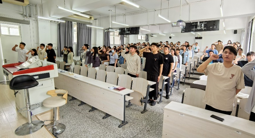 5月20日,理学院举行以“五育润心,青春向阳”为主题的升旗仪式。理学院党委书记龚维华、党委副书记贺映勇、团委书记夏丹梅、辅导员熊敏、理学院团委学生会以及23级全体学生参加此次升旗仪式。迎着毓秀园的曙光,升旗号角激昂响亮,护旗方队步步铿锵,伴随着庄严的国歌声,鲜艳的五星红旗冉冉升起,全体师生肃立,齐唱国歌,向国旗行注目礼。升旗仪式后,统23-1班杨子琦同学和信23-3班于泰之同学在国旗下发言。杨子琦同学鼓励同...