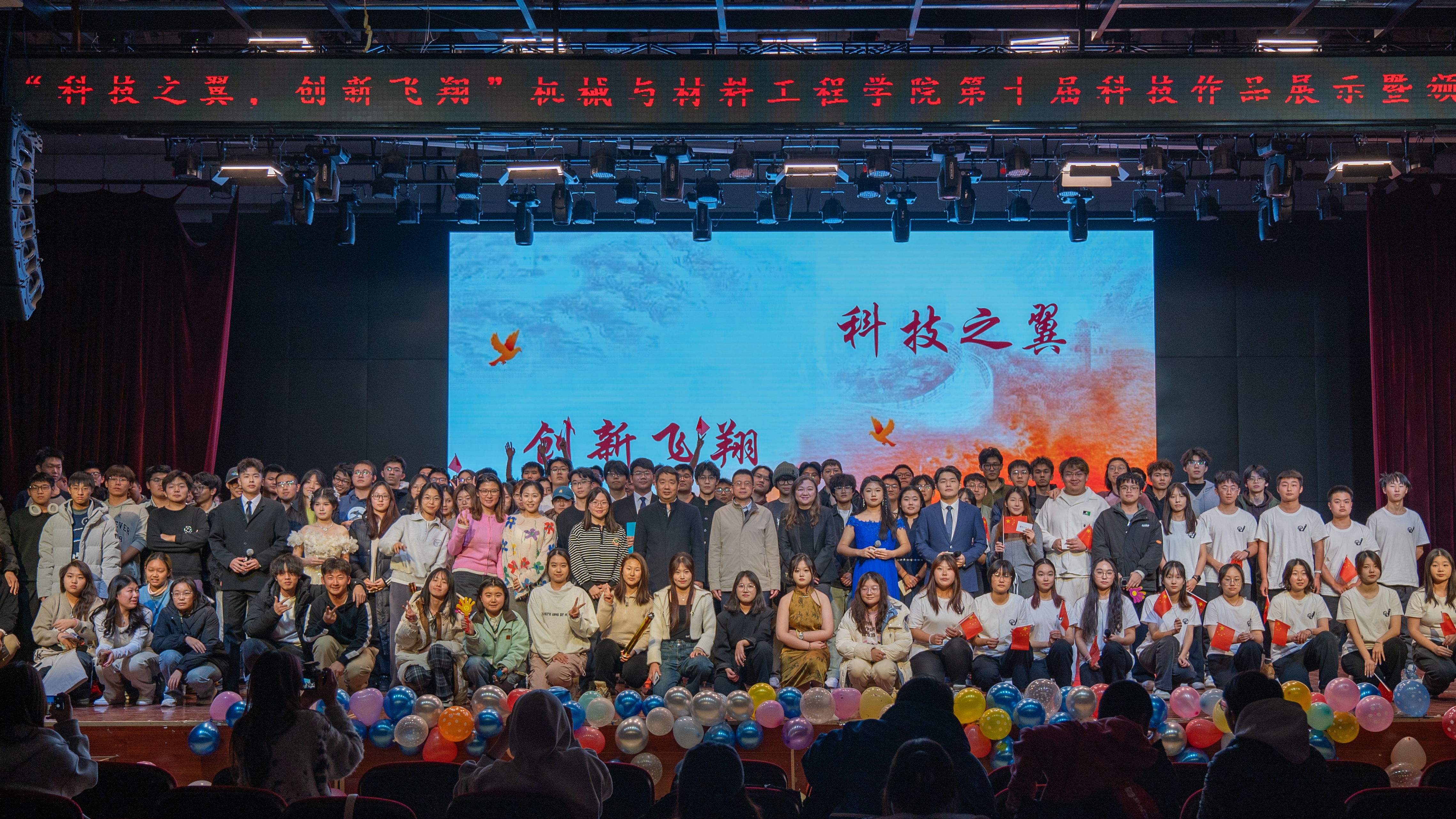 12月12日晚,“科技之翼,创新飞翔”——机械与材料工程学院第十届科技作品展示暨颁奖晚会在学生服务楼四层多功能厅举行。300余名师生欢聚一堂,欣赏学院学生精彩的科技作品展示。晚会在充满科技感的舞蹈中拉开了帷幕,同学们与步兵机器人同台表演,展现了机材学子的青春活力。《旷世对决》、《谁与争“峰”》、《你好机器人》节目通过对机械手及书法机器人制作过程的展示和讲解,让同学体会到了机械背后多学科融合的科技魅力并...