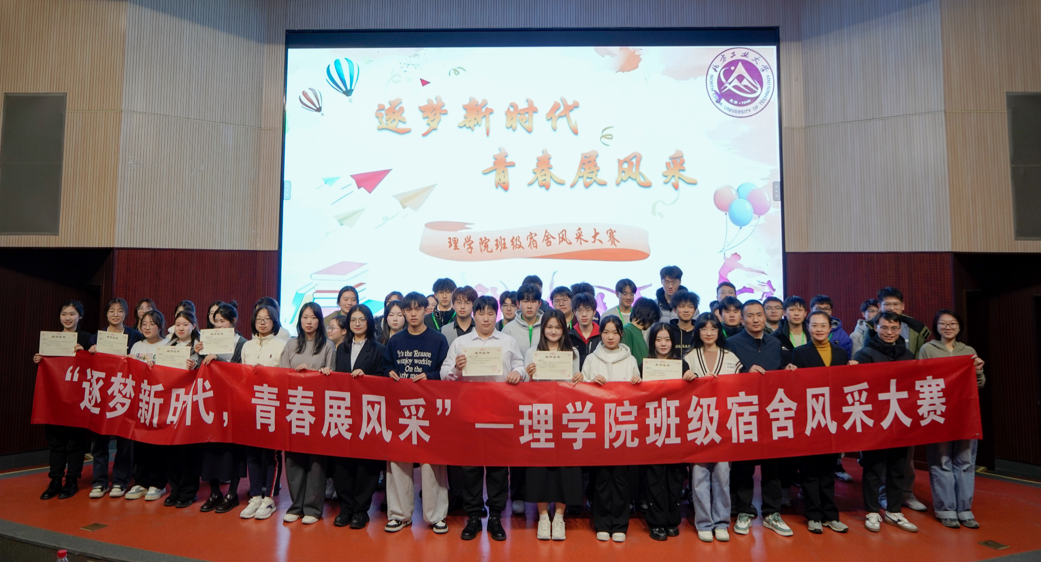 为增强班级凝聚力和团队精神,推进优良班风学风建设。理学院于12月18日晚在文化会堂举办了以“逐梦新时代,青春展风采”为主题的班级宿舍风采大赛决赛。理学院党委副书记贺映勇及全体辅导员担任本次比赛评委。经过前期对各班级和宿舍提交的材料进行初选,共有5个班级和8个宿舍进入决赛。以班为舟,乘风破浪在班级风采展示中,统24-2班的班徽灵感来源于火焰,象征着同学们积极向上的学习态度;统24-3班的班训为“登峰造极,破险...