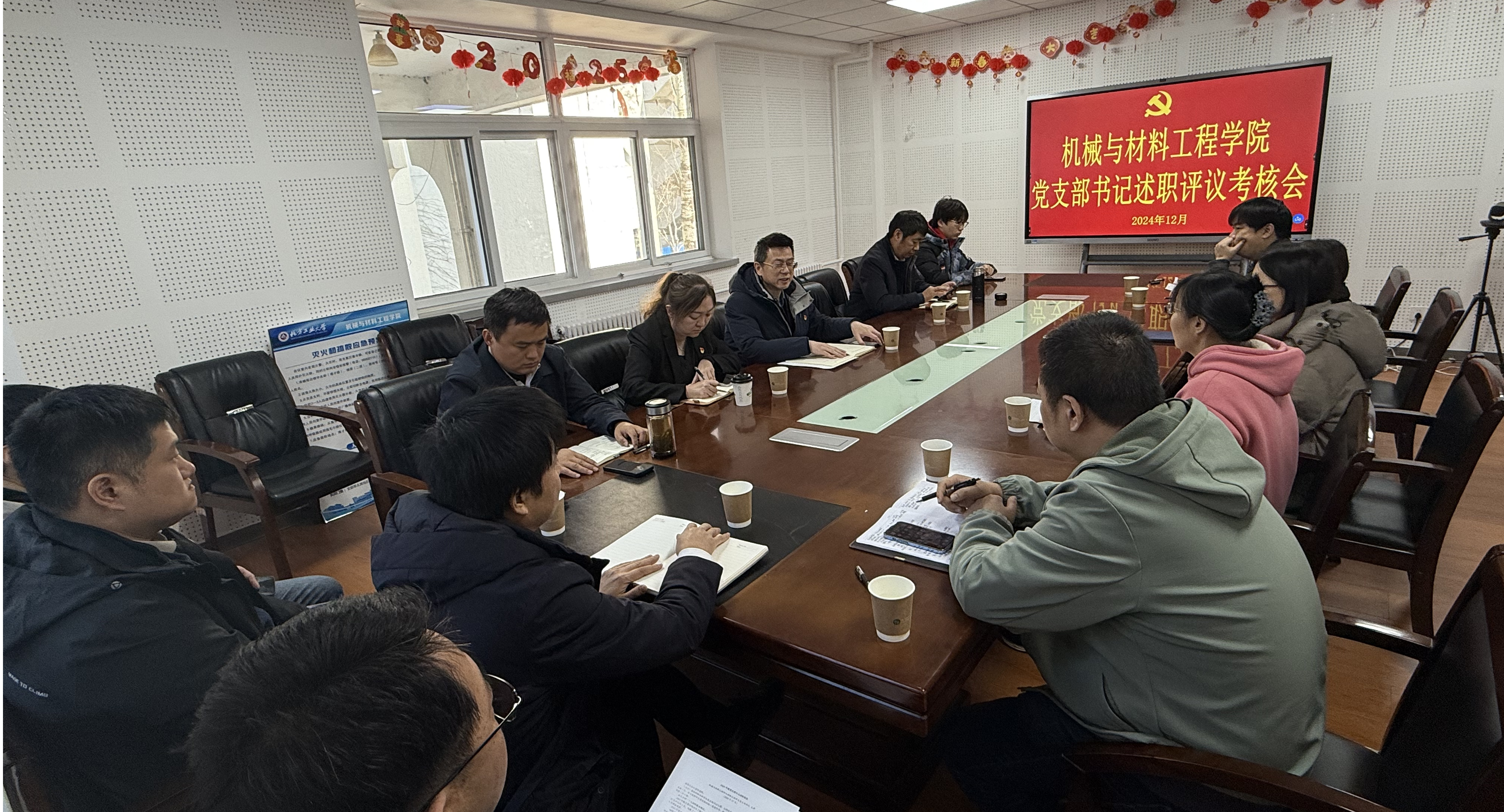 2024年12月31日上午,机械与材料工程学院党委在博才楼203召开2024年度党支部书记党建述职评议考核工作会。学院党委委员、各党支部书记参加会议。会议由学院党委书记王文革主持。在述职评议会上,各党支部书记作为支部党建工作“第一责任人”,认真梳理了本支部2024年在“三会一课”制度、党日活动、学习贯彻习近平新时代中国特色社会主义思想和主题教育、党纪学习等系列学习教育、党风促班风和学风、党务与业务结合、以党建引领...