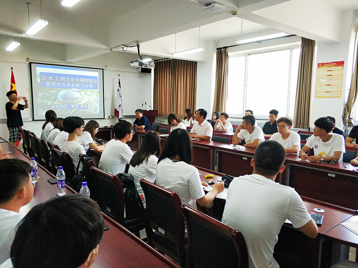 9月5日,土木工程学院在浩学楼1103会议室举行2019级研究生入学教育,土木工程一级学科责任教授孙世国、研究生辅导员丁阔以及2019级全体硕士研究生参加了会议。会议由学院党委副书记张少波主持。孙世国教授以《土木工程专业发展趋势与研究生应具备能力分析》为题,对研究生的基本素养、学术能力及基础专业知识提出要求,指出土木工程将走向多学科融合以及信息化、智能化的发展方向,他以海绵城市、城市风险评估等学科热门课题为...
