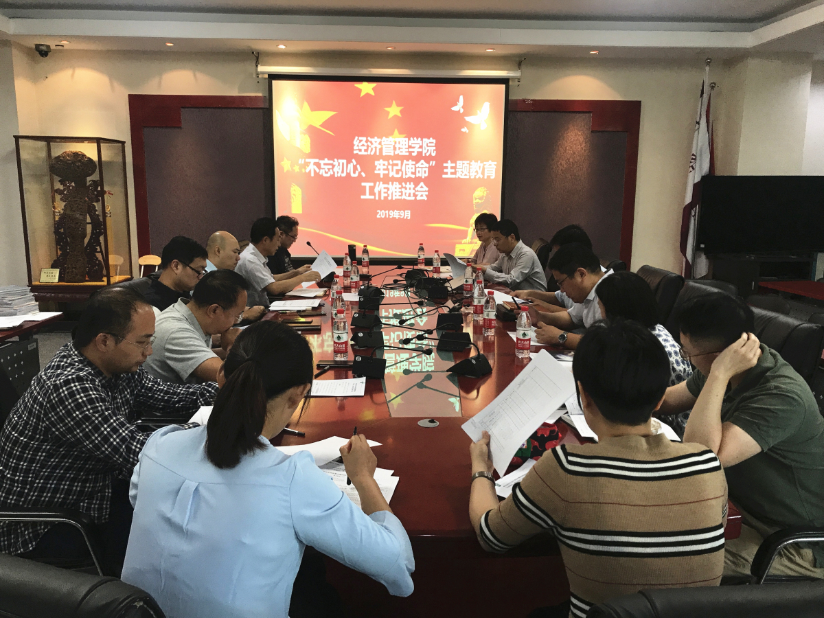 为深入贯彻习近平总书记重要指示批示精神和《中共中央关于在全党开展“不忘初心、牢记使命”主题教育的意见》要求,9月19日下午,经济管理学院在励学楼201会议室集中开展“不忘初心,牢记使命”主题教育工作推进会。会议由学院党委书记王伟宾主持,学院党委委员及各党支部书记参加了此次会议。 会上,王伟宾书记结合校党委书记郑文堂在学校动员部署大会上的讲话精神,带领大家解读习近平总书记的重要指示,学习了“不忘初...