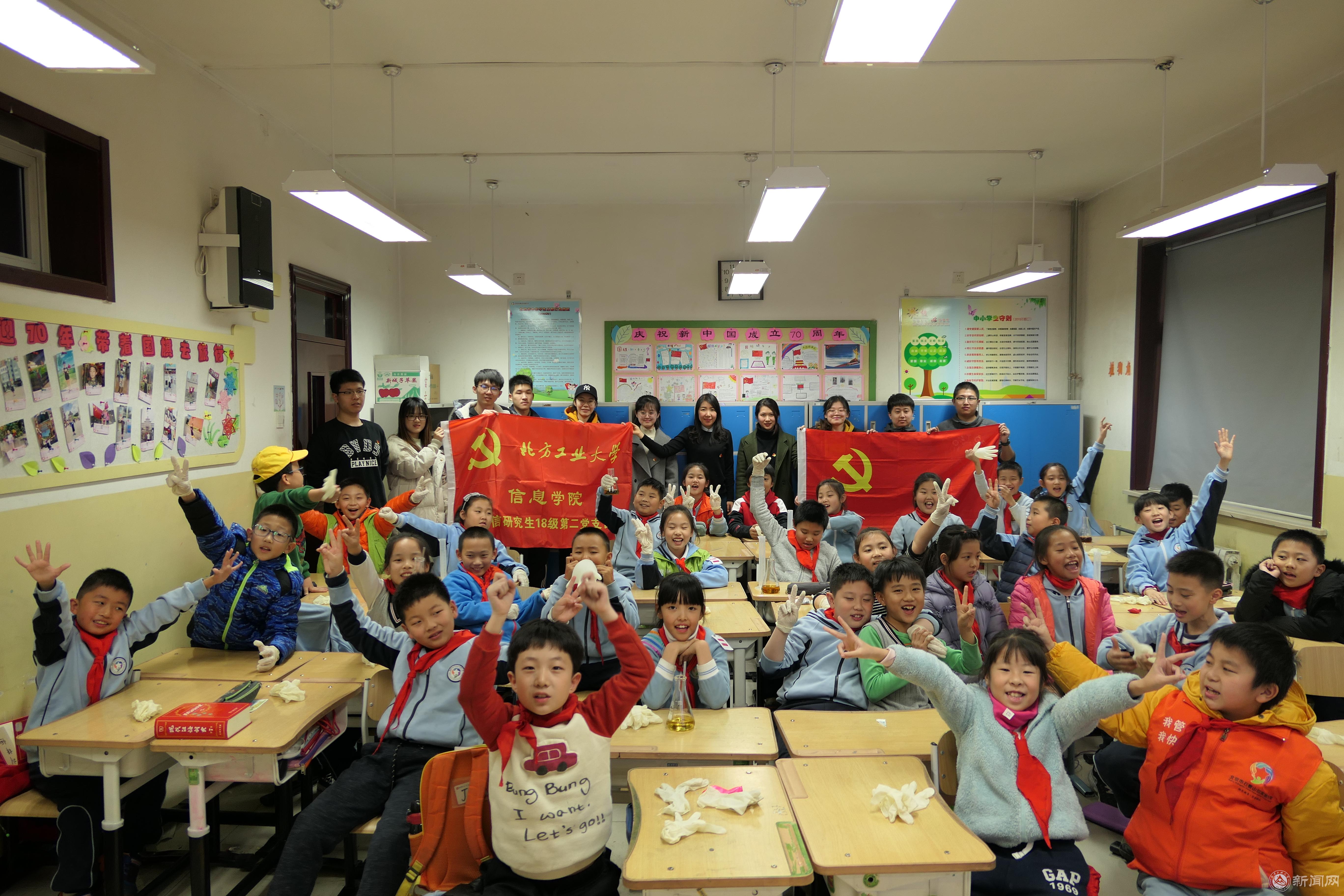 为践行研究生党员严格以党章要求自己,服务社会,11月29日,信息学院电信研究生18级第二党支部在张梅老师的带领下前往石景山实验小学,为四年级的小学生带去了一节生动有趣的化学课。这也是支部与石景山实验小学建立“共建基地”以来,开展“科技进课堂”专题共建的第六次活动。支部党员集思广益,准备了四个有趣又安全的实验——“用稀盐酸和碳酸氢钠吹气球”,“鸡蛋的沉浮”,“软硬水检测”,“红绿灯实验”,生动形象地介...