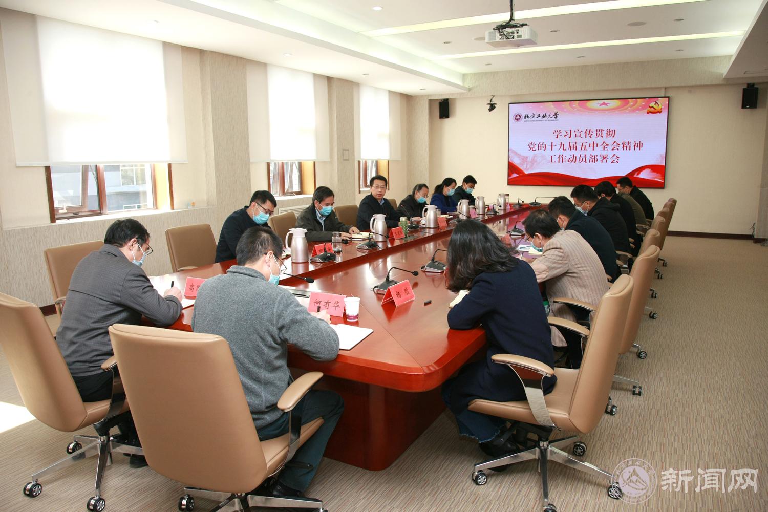 11月9日上午,学校召开学习宣传贯彻党的十九届五中全会精神工作动员部署会,党委书记缪劲翔对五中全会精神进行了解读阐释,对学习宣传贯彻工作进行了安排部署。校领导胡应平、王建稳、田红芳、柳长安、马春成出席会议。