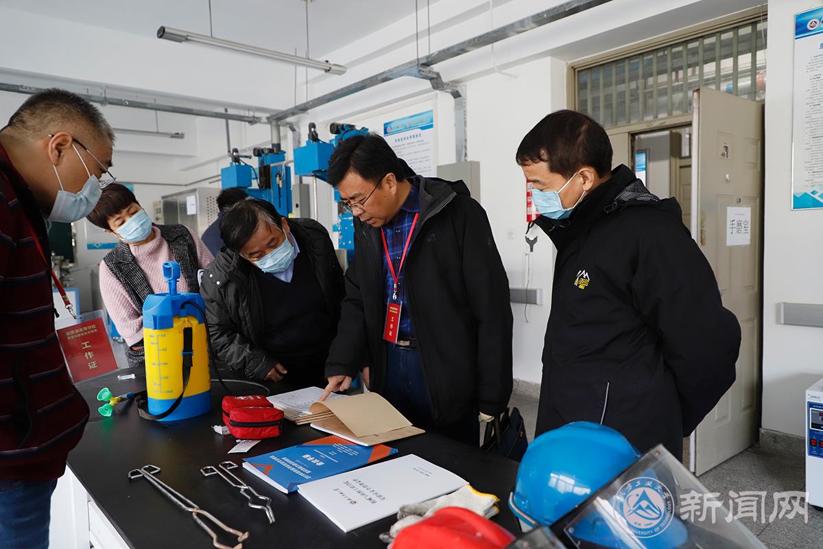 专家组分成两组,分别对信息学院、电气与控制工程学院、机械与材料工程学院、土木工程学院、建筑与艺术学院、理学院等学院实验室进行了现场抽检,对各实验室的负责人、值班教师和学生进行随机的问询和检查。下午,专家组认真查阅了学校实验室安全的管理制度和相关文件,与多所学院的实验室师生进行现场座谈,详细了解实验室安全情况。