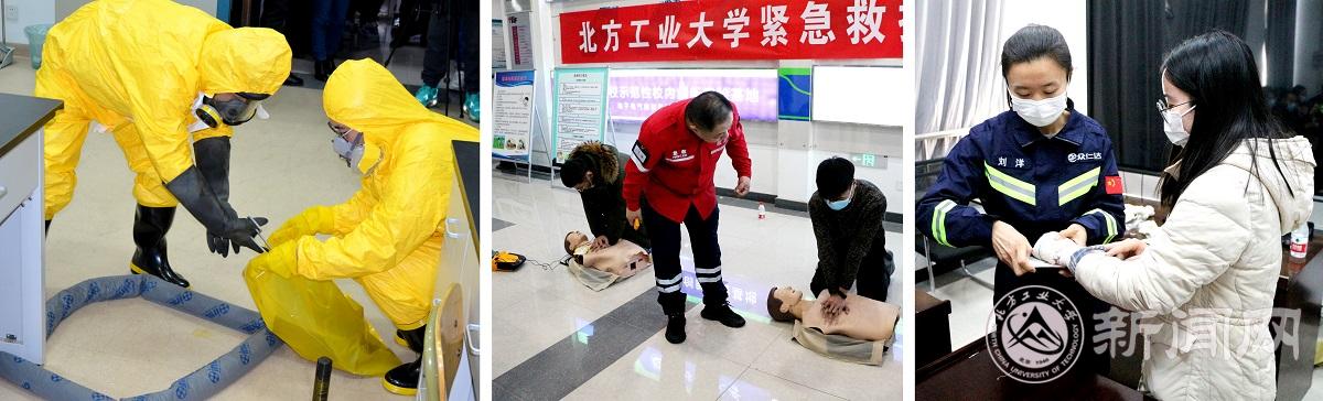 为进一步提高实验室危险化学品事故应急处置和救援能力,2020年12月25日上午,beat365开展了实验室危险化学品事故应急演练,党委常委、副校长柳长安出席应急演练,北京市公安局石景山消防支队危化品防护科专家、中国红十字会专家到场指导,科技处、教务处、安全稳定工作处、校医院、信息学院、机械与材料工程学院和土木工程学院的师生60余人共同参加了演练。