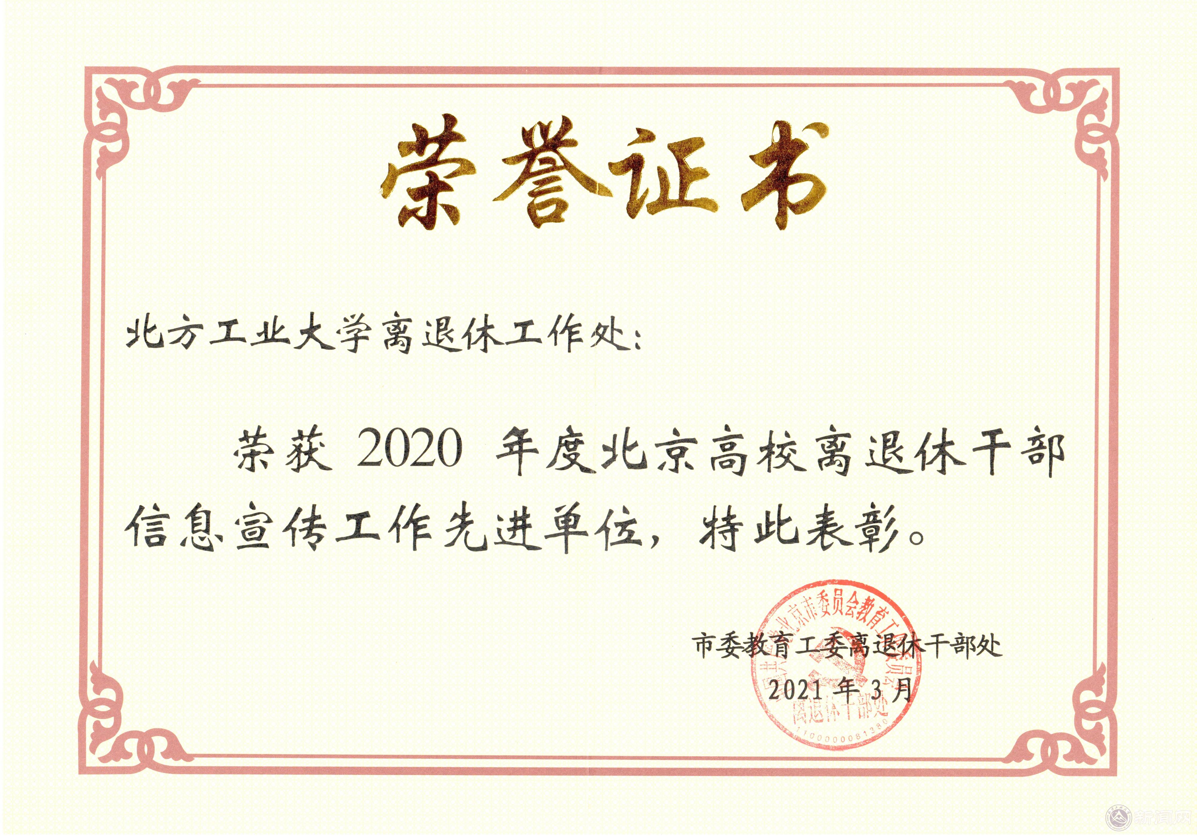 在日前召开的2021年北京高校离退休工作部门负责人会议上,beat365离退休工作处被评为“2020年度北京高校离退休干部信息宣传工作先进单位”。