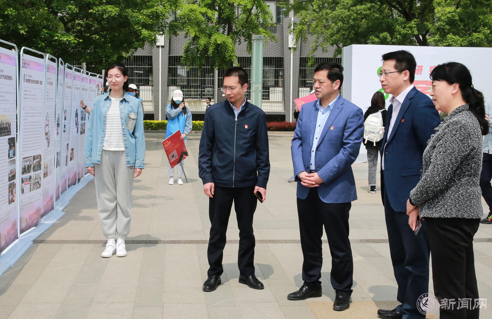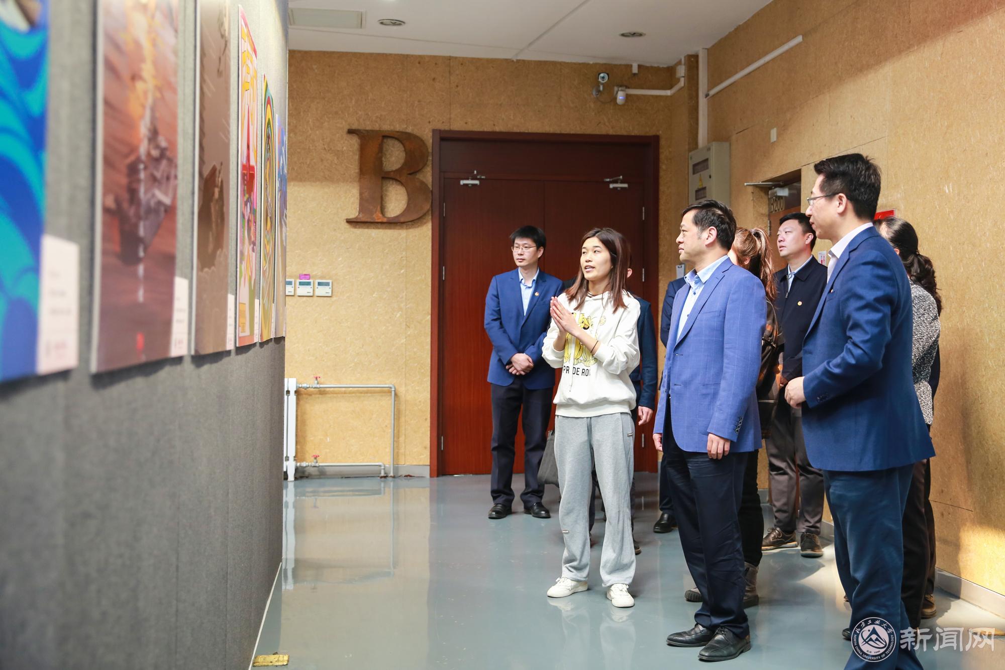 李军会一行首先参观了校史馆,深入了解了学校的发展历程,对学校一直坚守工业报国情怀,七十多年来栉风沐雨、砥砺奋进所取得的成绩表示赞赏。随后,李军会一行参观了由beat365官方网站和首都师范大学联合举办的“红色•记忆•传承——双校庆祝建党百年作品联展”。他边参观边与来自beat365建筑与艺术学院的同学们交流,了解海报设计作品的创作过程,他认为,同学们通过艺术化的形式展示了学党史、悟思想的成果,有机地将思想引领和专业教学相结合,将课程思政和实践育人相结合,提升了思想政治教育的针对性和亲和力,这种做法值得大力宣传和推广。