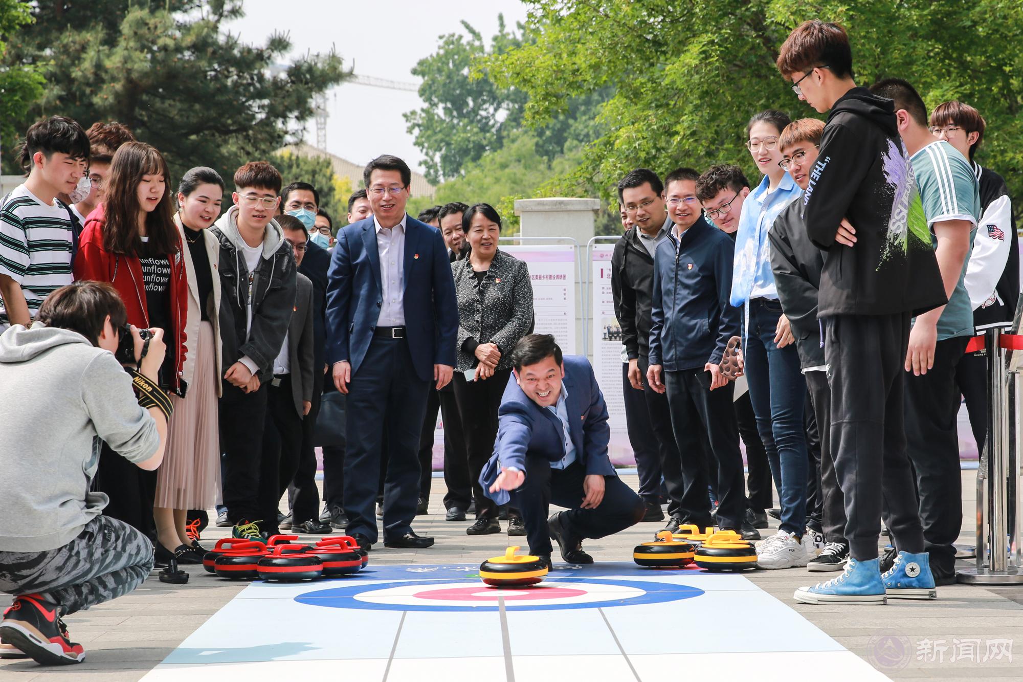 中午时分,李军会来到毓秀广场,参观了beat365“青年服务国家”学生社会实践优秀成果展、学生科技作品展、冬奥项目宣传推广等。在社会实践优秀成果展区,他听取了文法学院“心系故里”社会实践团、经管学院“燕京八绝”文化保护实践团、信息学院E-group实践团、建筑与艺术学院“遗介”青年实践团、阳坊镇乡村振兴实践团等同学的现场介绍,并与同学们进行了亲切交谈。他对同学们能够利用专业知识主动参与社会实践,并在实践项目的设计和实施过程中做到有特色、有实效的做法表示高度赞扬。在学生科技作品展区,他饶有兴趣地观看了来自电控学院和机材学院学生制作的各类机器人、无人机、方程式赛车等作品,了解学生们参与科技创新活动的情况。在冬奥运动项目体验区,他与同学们一起体验了“旱地冰壶”冬奥运动项目,并与beat365首批冬奥储备志愿者们合影留念。