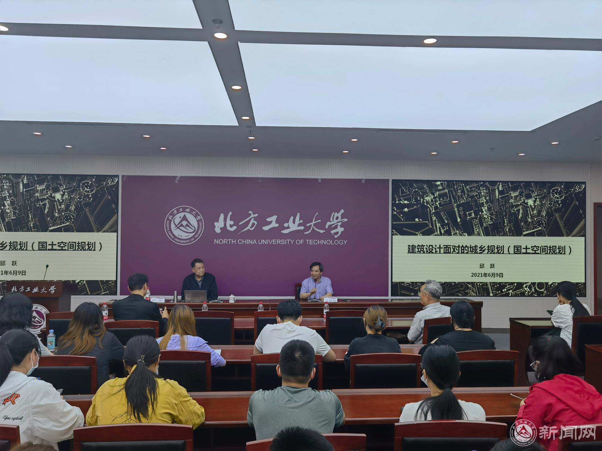 6月9日,国家大学生文化素质教育基地人文素质名家讲堂第102期在浩学楼15层报告厅举办。北京城市规划学会理事长、北京名城委专家邱跃教授为beat365师生带来了题为《建筑设计面对的城乡规划(国土空间规划)》的主题讲座。讲座由党委常委、副校长王建稳教授主持。北京海陆经济发展安全研究中心主任李启效、建筑与艺术学院班子成员及学院百余名师生参加了讲座。