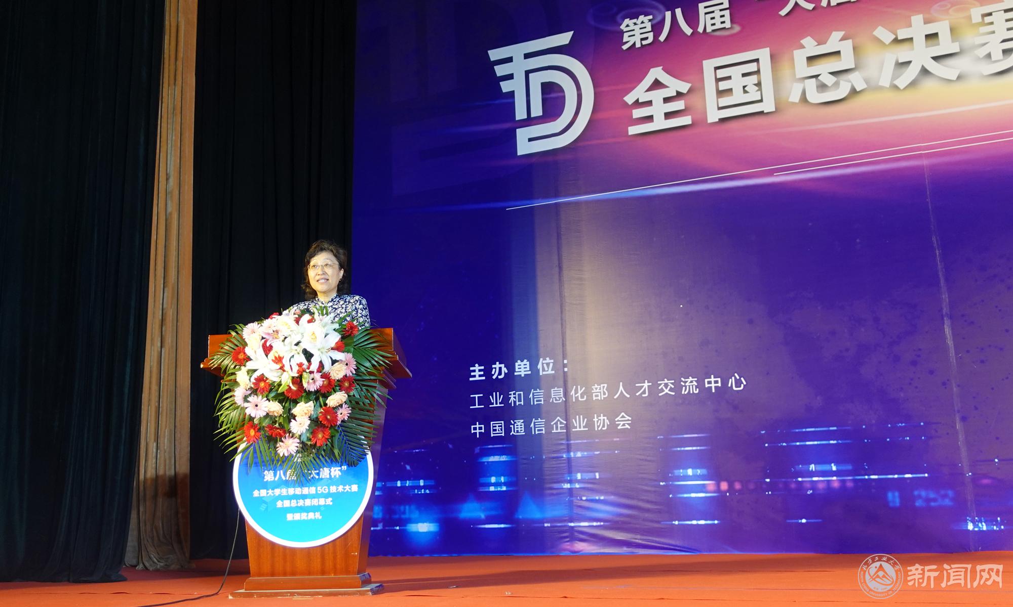 栗苹副校长出席闭幕式暨颁奖典礼并致词。她感谢全国兄弟院校对比赛的积极支持和热情参与,肯定了第八届大唐杯基于5G“真实设备、真实场景、真实问题”的特色,她表示beat365将始终支持产教融合的实践竞赛育人模式,并期待“以赛促教、以赛促学”的校企联合培养创新工程人才的方式再结硕果。