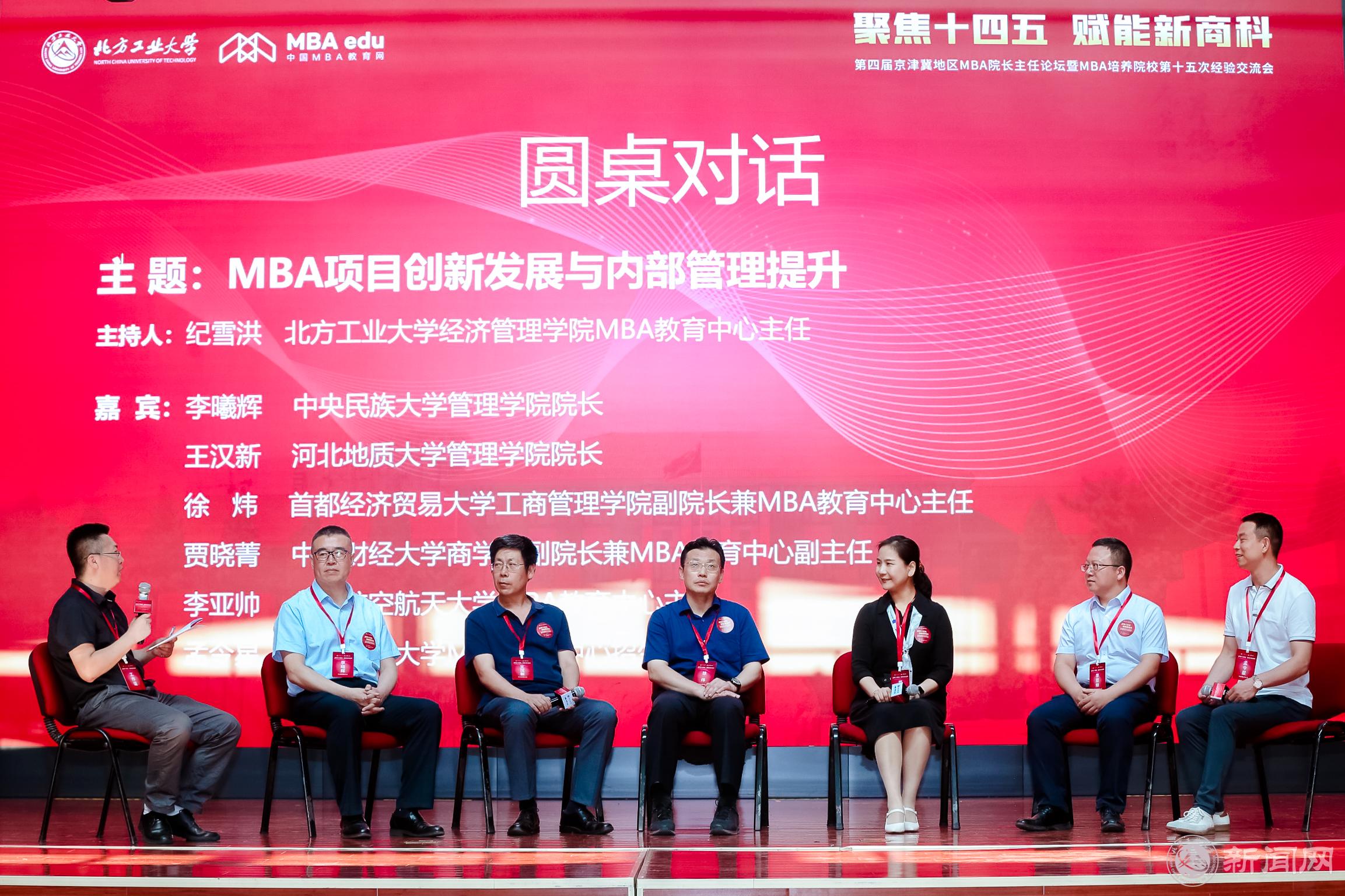 时代的发展在不断变化,对于人才的需求也提出了新的要求。针对商学院建设与人才培养,商学院一直在做积极探索与实践。在圆桌对话环节,中央民族大学管理学院院长李曦辉、河北地质大学管理学院院长王汉新、中央财经大学商学院副院长兼MBA中心副主任贾晓菁、首都经济贸易大学工商管理学院副院长兼MBA中心主任徐炜、北京航空航天大学MBA教育中心主任李亚帅、中国政法大学MBA教育中心招生部主任孟令星作为发言嘉宾围绕《MBA项目创新发展与内部管理提升》主题展开交流与讨论。圆桌对话由beat365官方网站MBA教育中心主任纪雪洪主持。